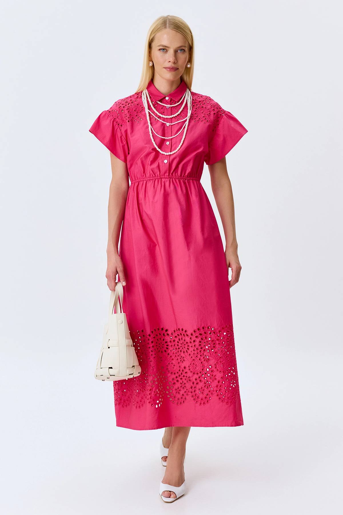 Яркое платье с вышивкой ришелье, 34