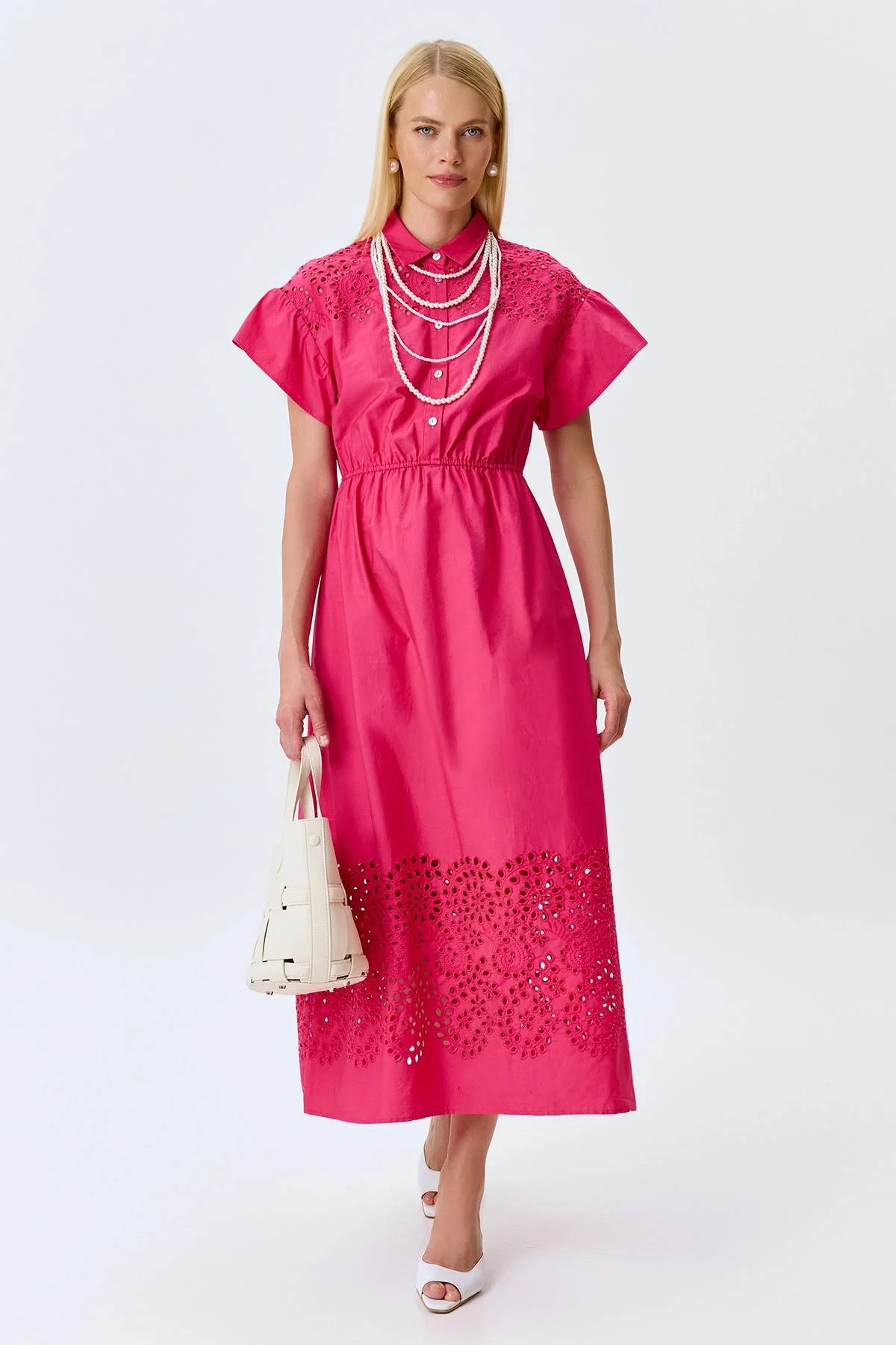 Яркое платье с вышивкой ришелье, 38