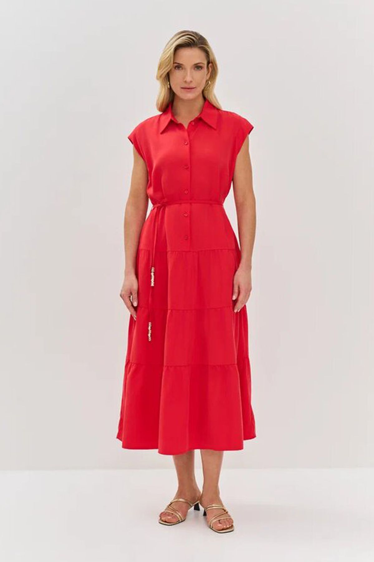 Ярусное платье красного цвета со шнурком на талии, 42р