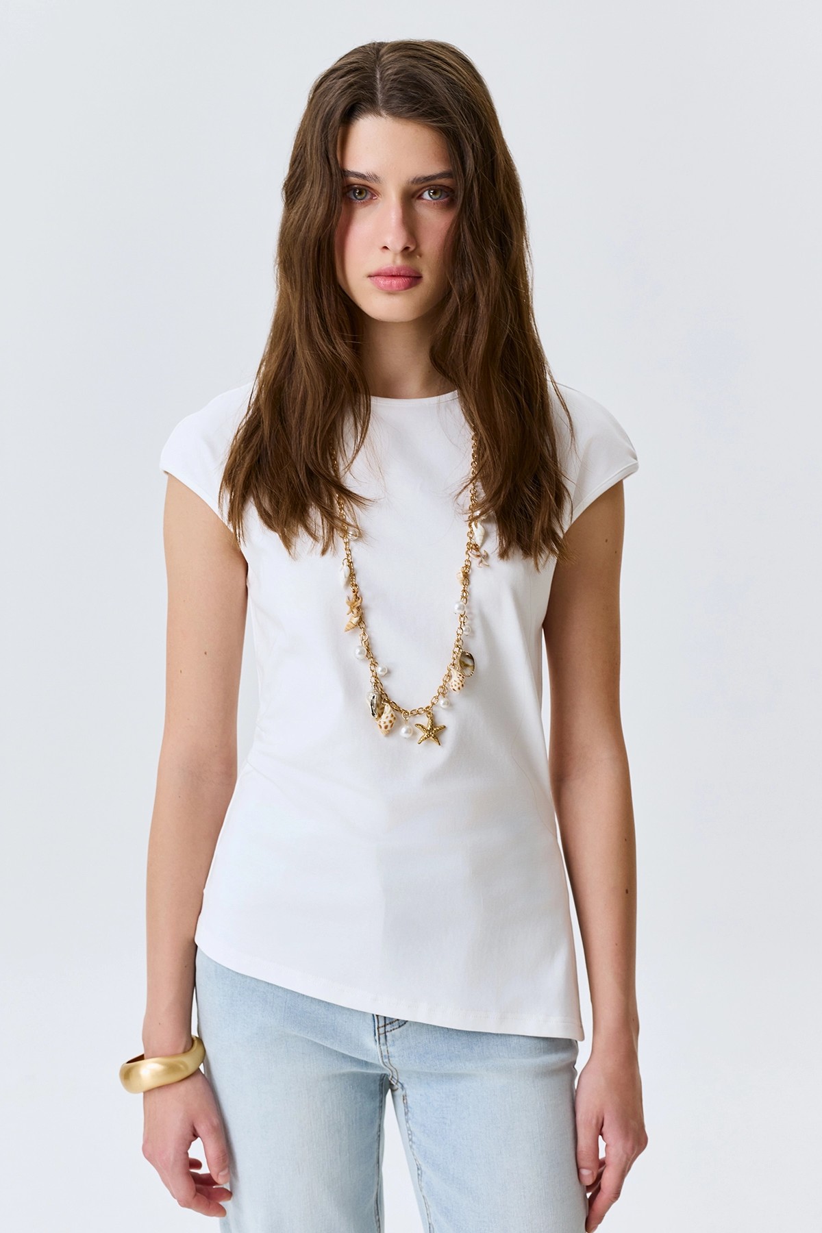 Асимметричный белый топ с высоким разрезом, 52