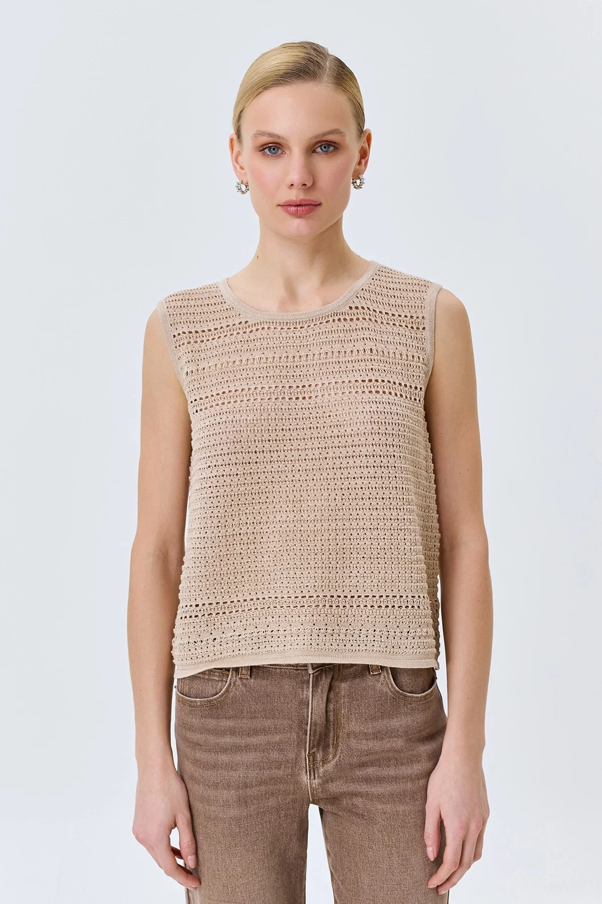 Ажурный бежевый топ с люрексом, 48