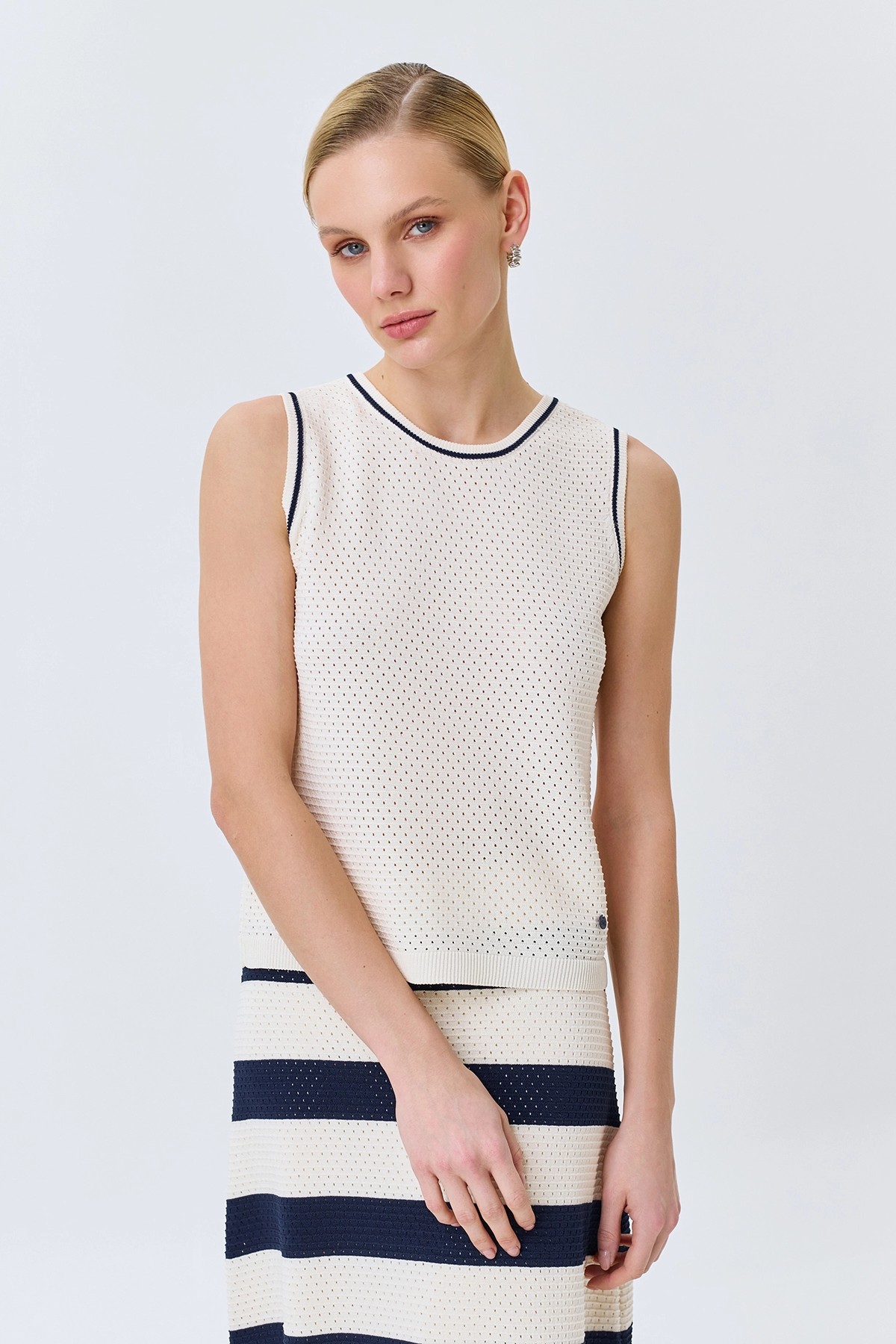 Ажурный топ с контрастными кантами, 46
