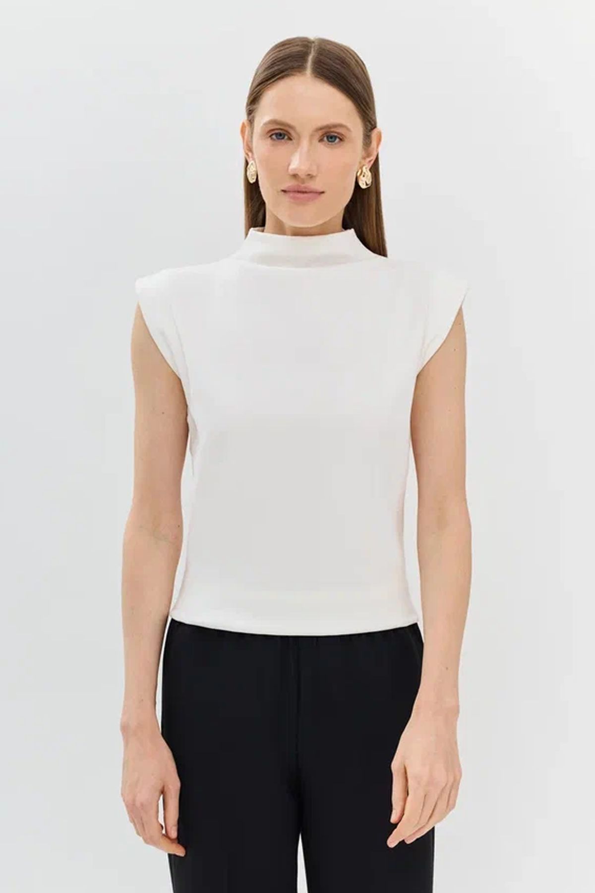 Хлопковый топ с высоким воротником-стойкой, 46р
