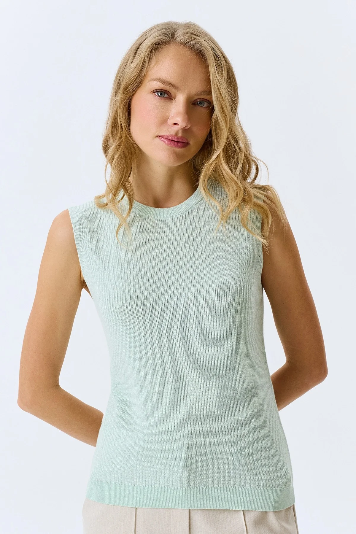 Мятный вязаный топ, 44