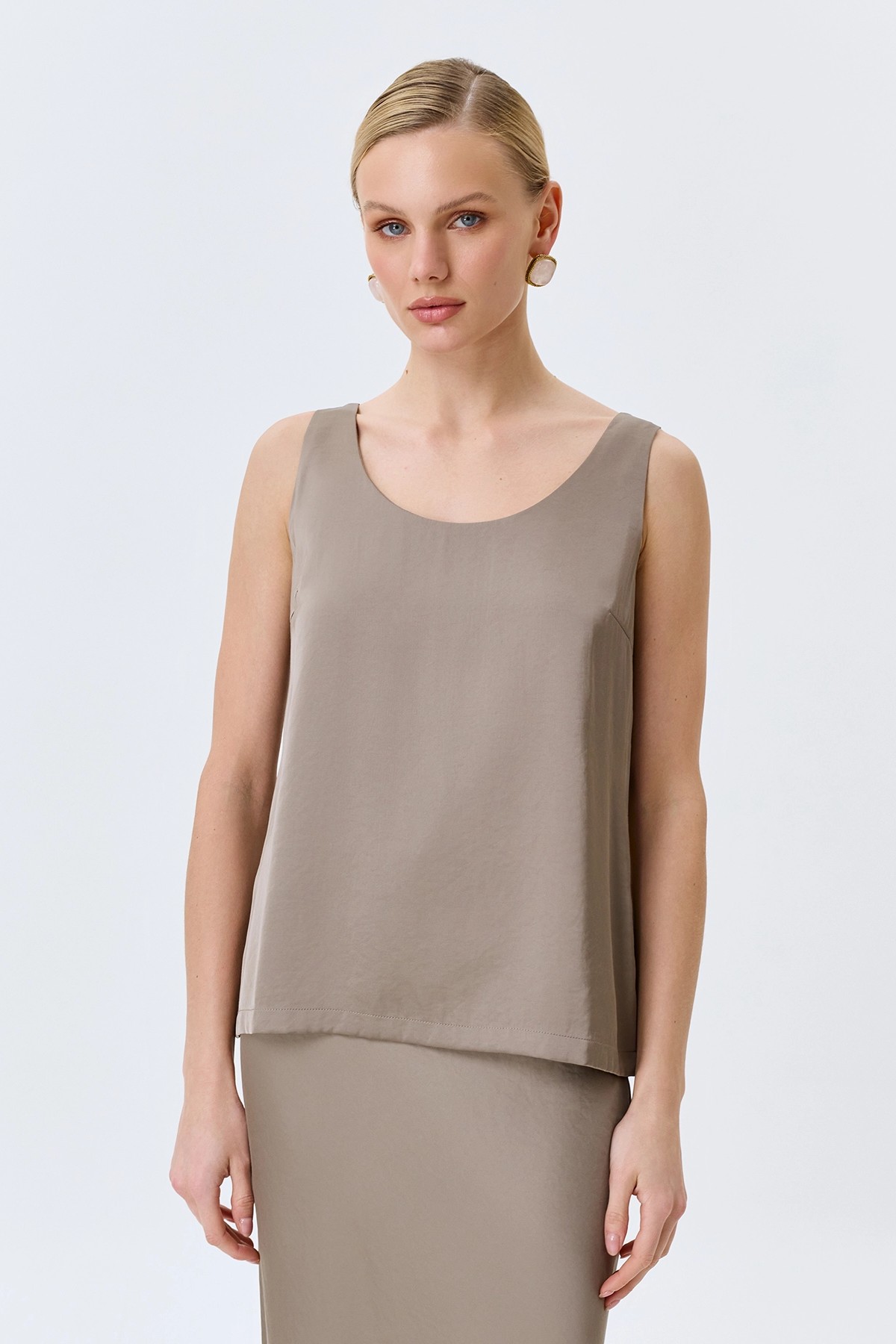 Свободный сатиновый топ в цвете кофе, 46