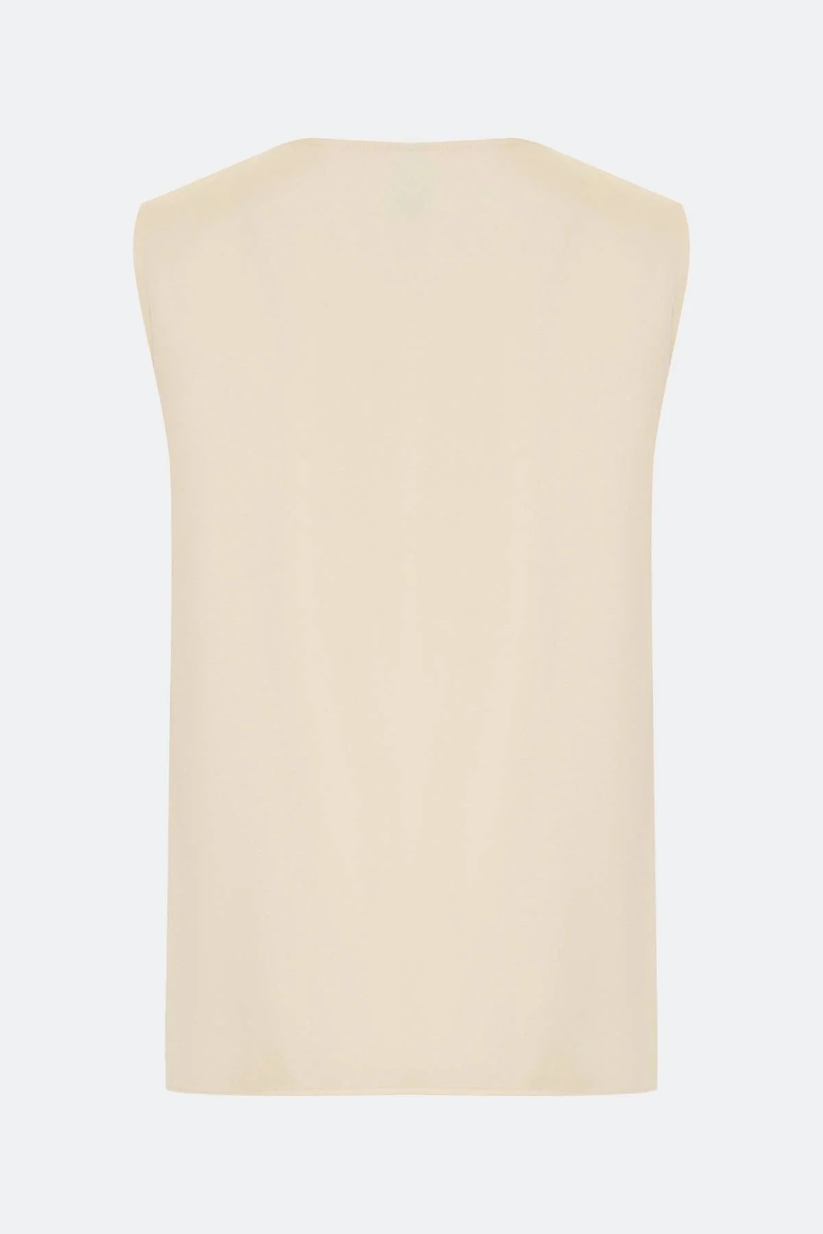 Базовый топ из смесовой вискозы. Прямой силуэт. Круглый вырез.