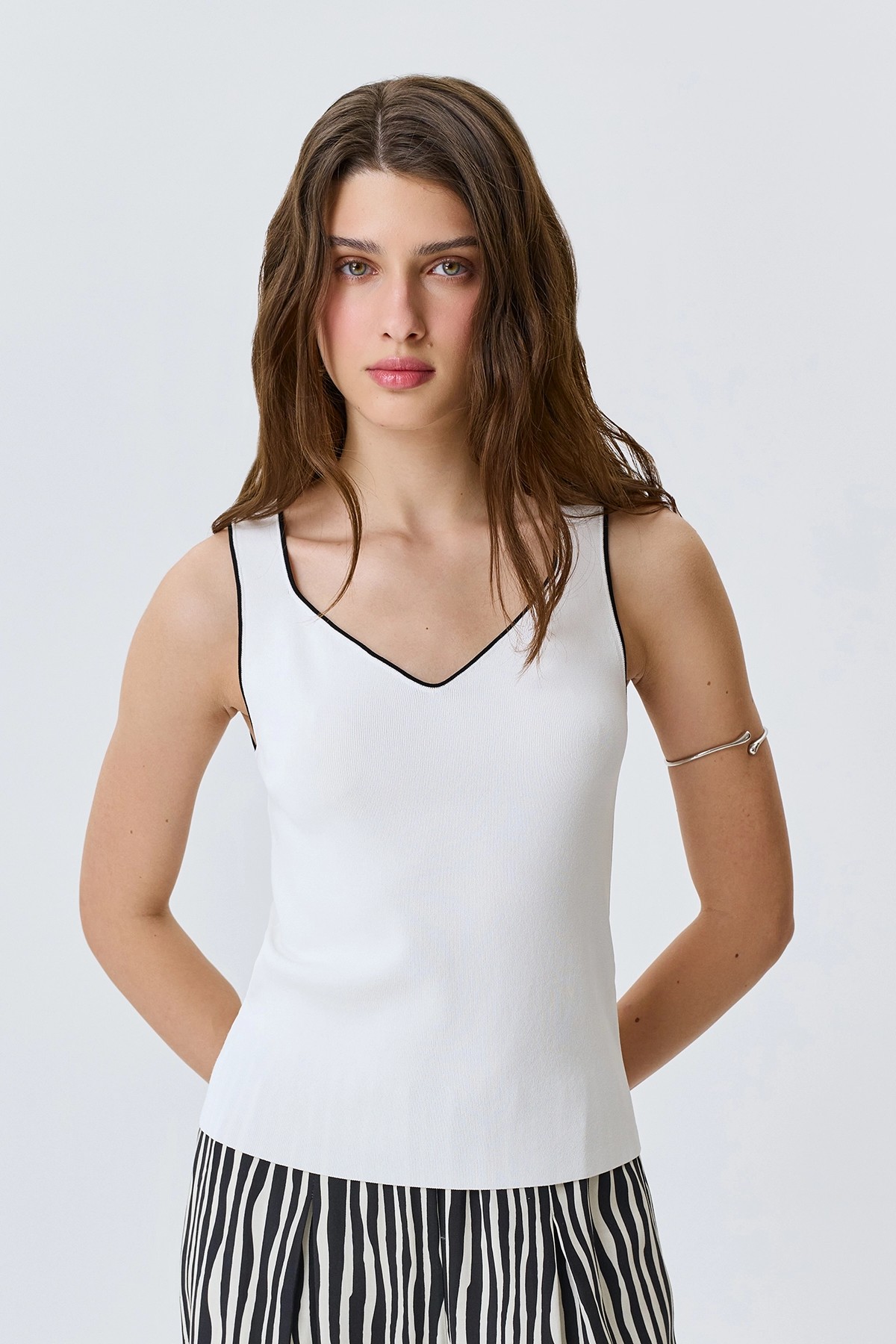 Топ из вискозы с контрастным кантом, 48