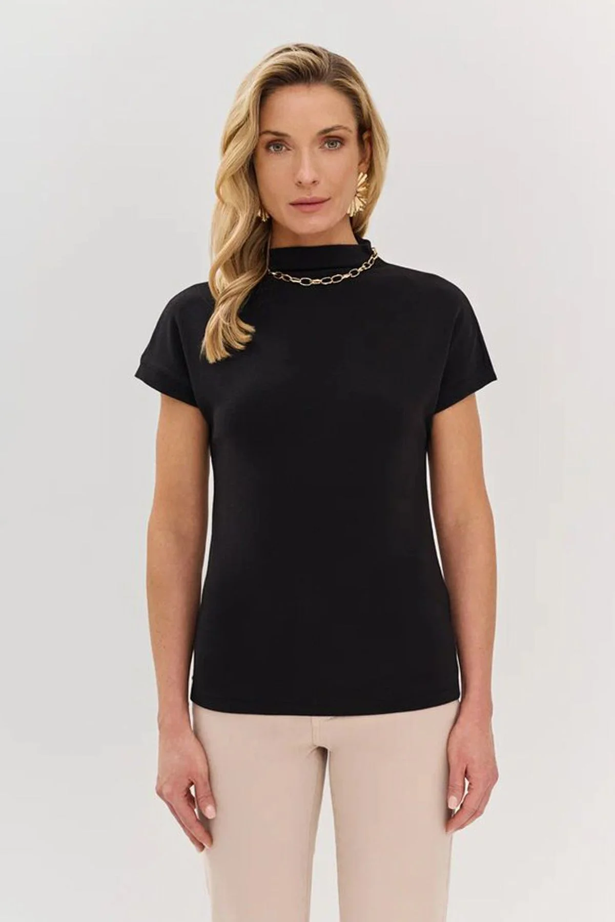 Топ молочного цвета с цельнокроеным воротником-стойкой, 42р