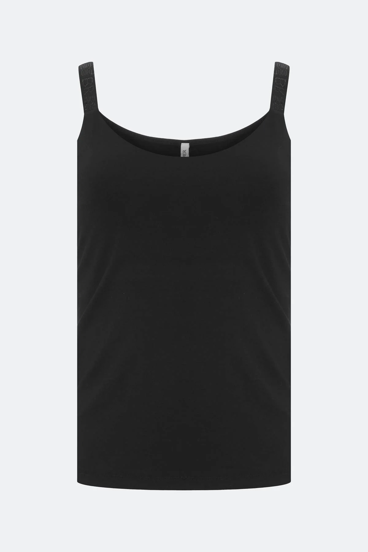 Топ с брендированными бретельками. Приталенный силуэт. Глубокий круглый вырез. В составе бамбуковое волокно и спандекс.