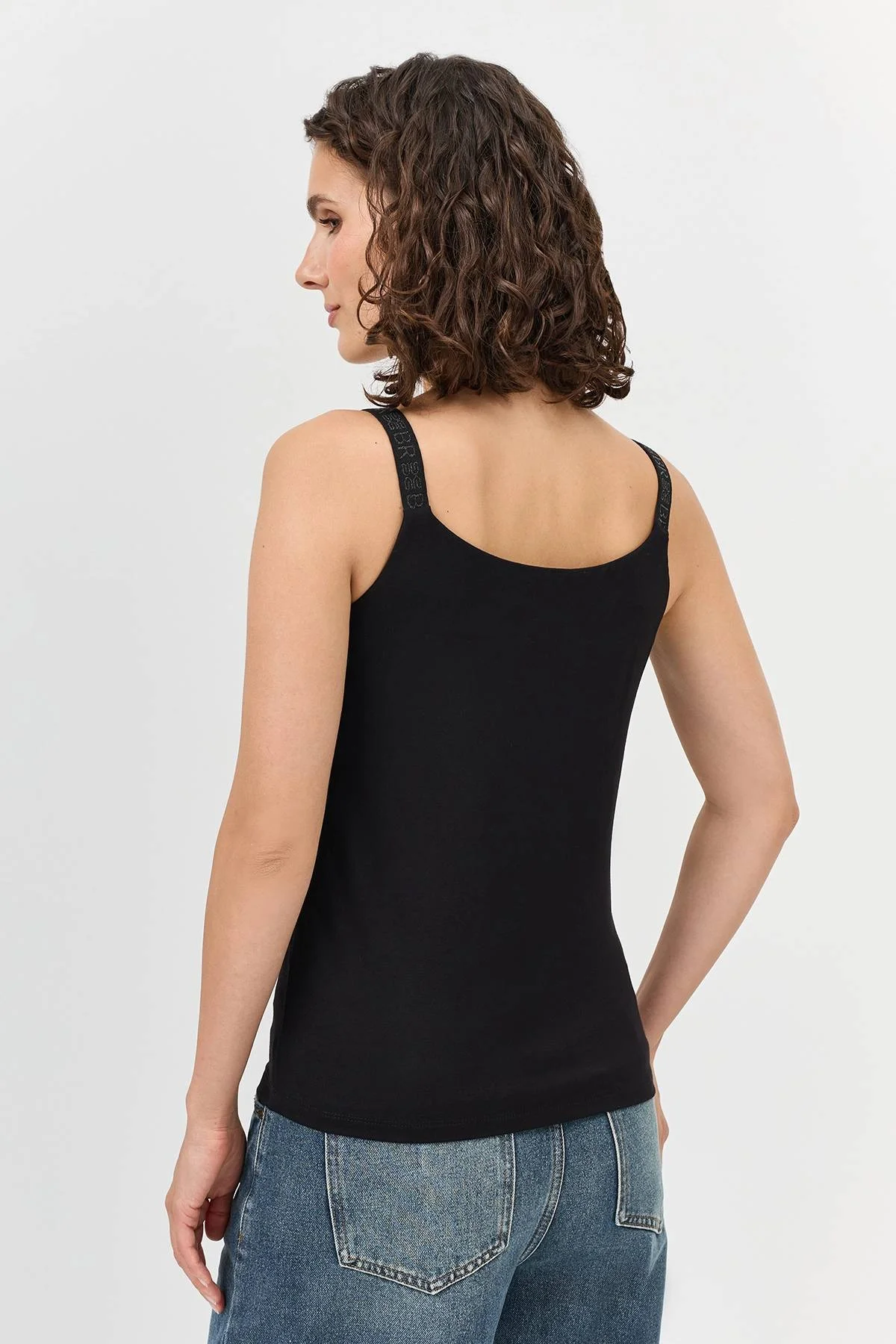 Топ с брендированными бретельками. Приталенный силуэт. Глубокий круглый вырез. В составе бамбуковое волокно и спандекс.