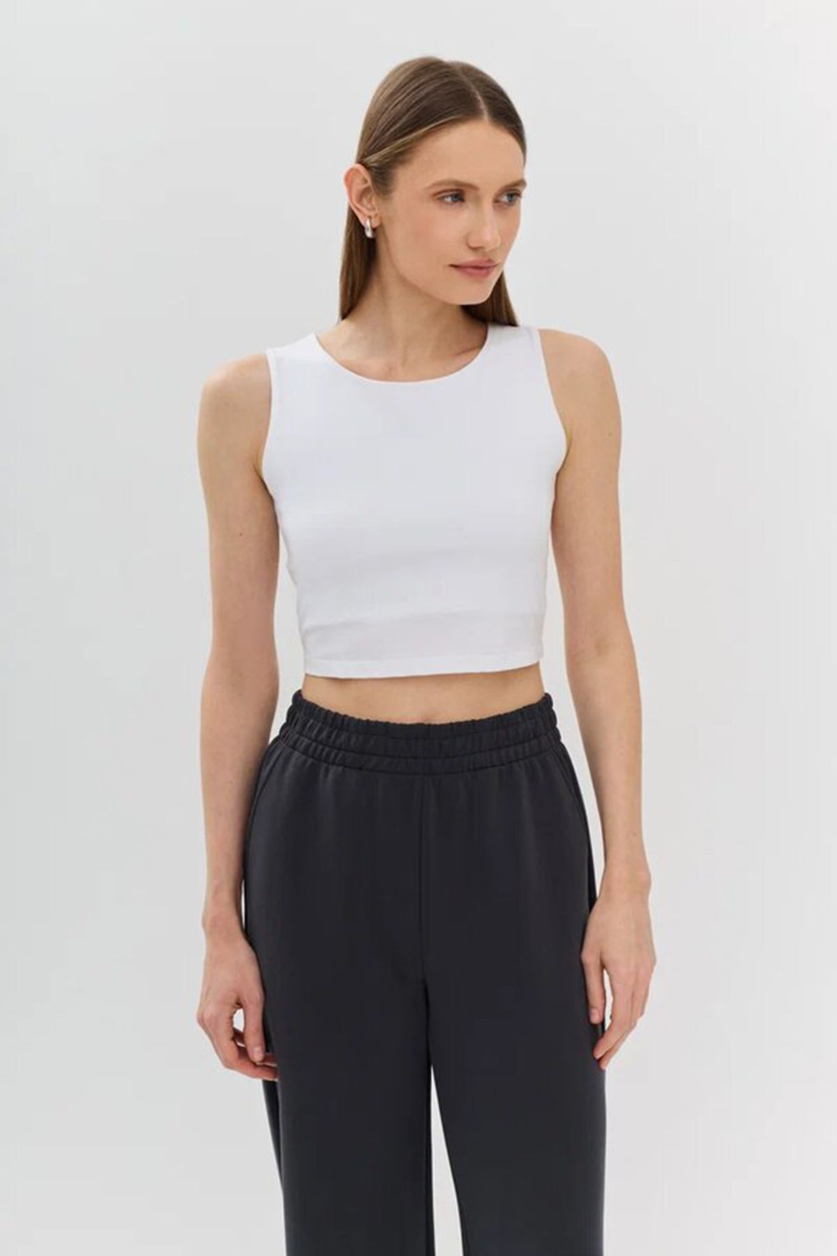 Укороченный базовый топ без рукавов в белом цвете, 46р