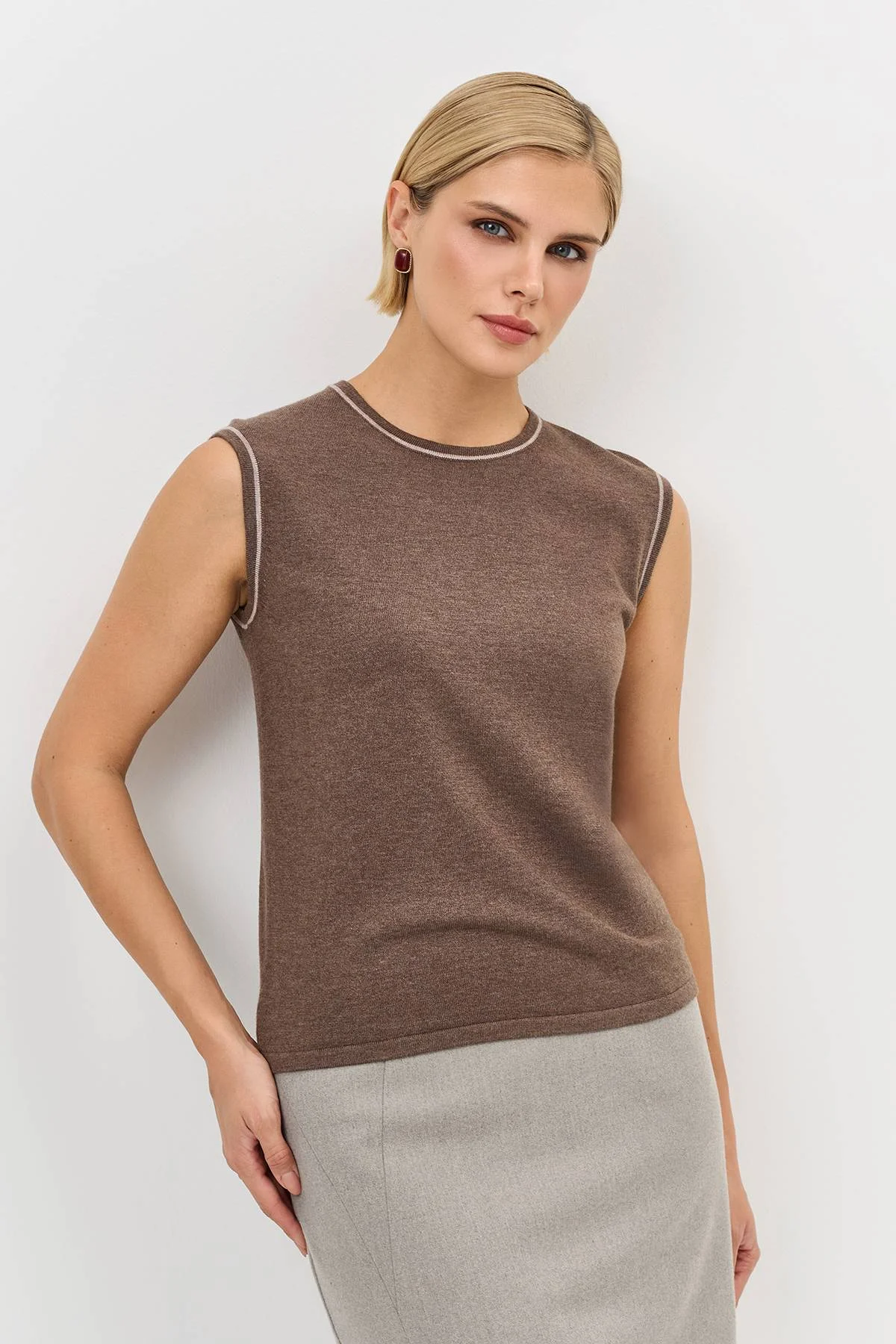 Прямой силуэт со спущенным плечом и контрастной окантовкой создает стильный повседневный образ. Мягкая смесовая пряжа с шелком обеспечивает комфорт и легкое мерцание. Круглый вырез и лаконичный дизайн делают модель универсальной для многослойных образов.