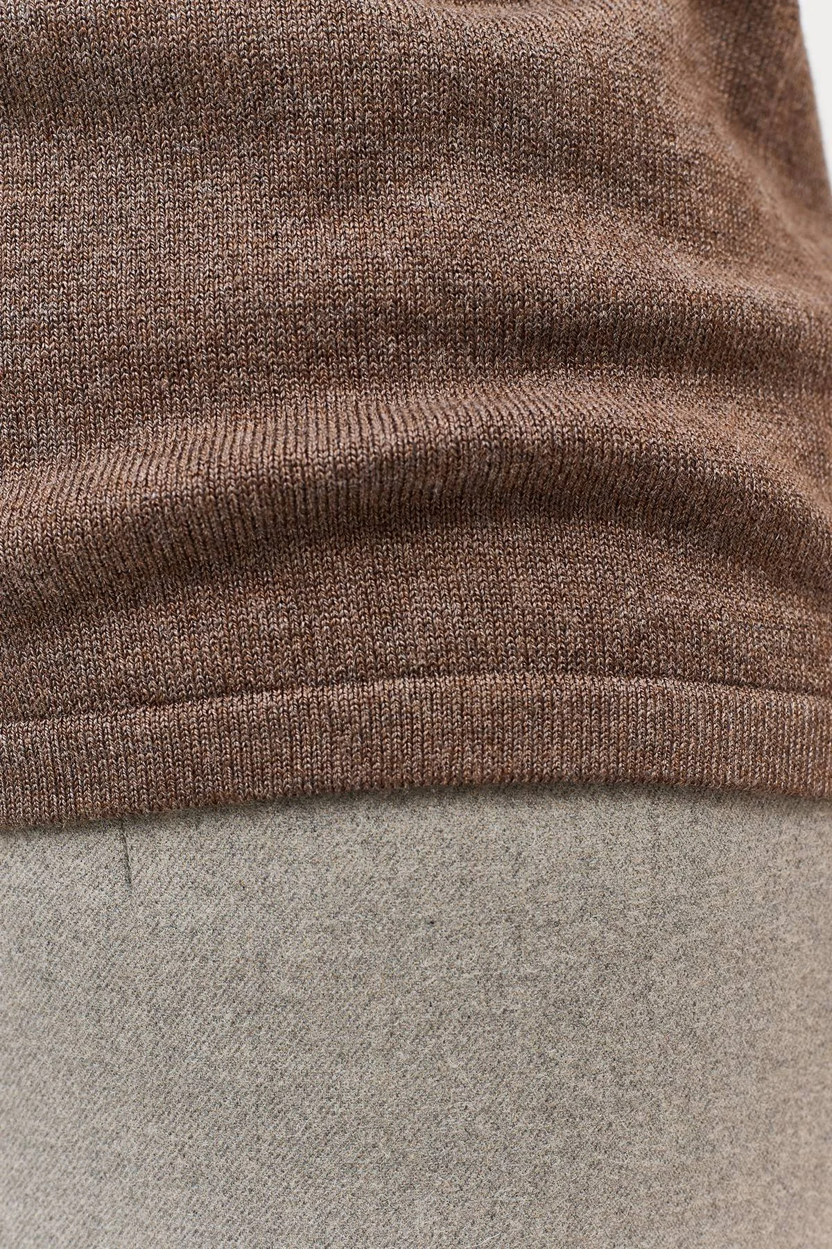 Прямой силуэт со спущенным плечом и контрастной окантовкой создает стильный повседневный образ. Мягкая смесовая пряжа с шелком обеспечивает комфорт и легкое мерцание. Круглый вырез и лаконичный дизайн делают модель универсальной для многослойных образов.