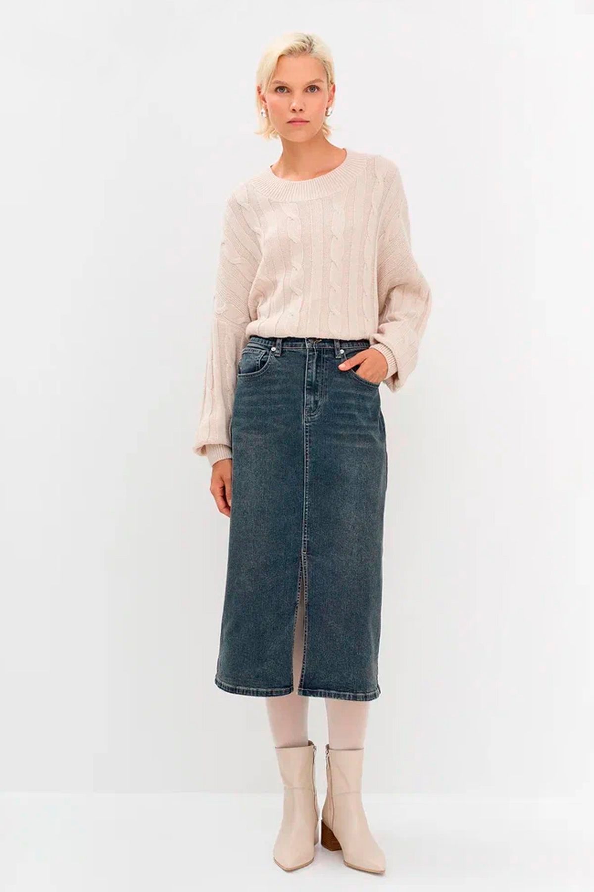 Джинсовая юбка с деликатной варкой в черном цвете, 48р