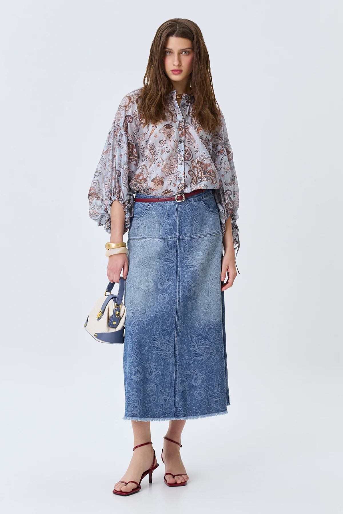 Джинсовая юбка с принтом "Пейсли", 50