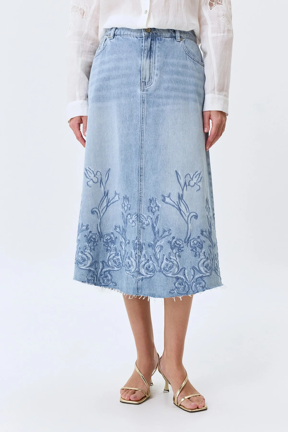Джинсовая юбка с цветочной вышивкой, 38