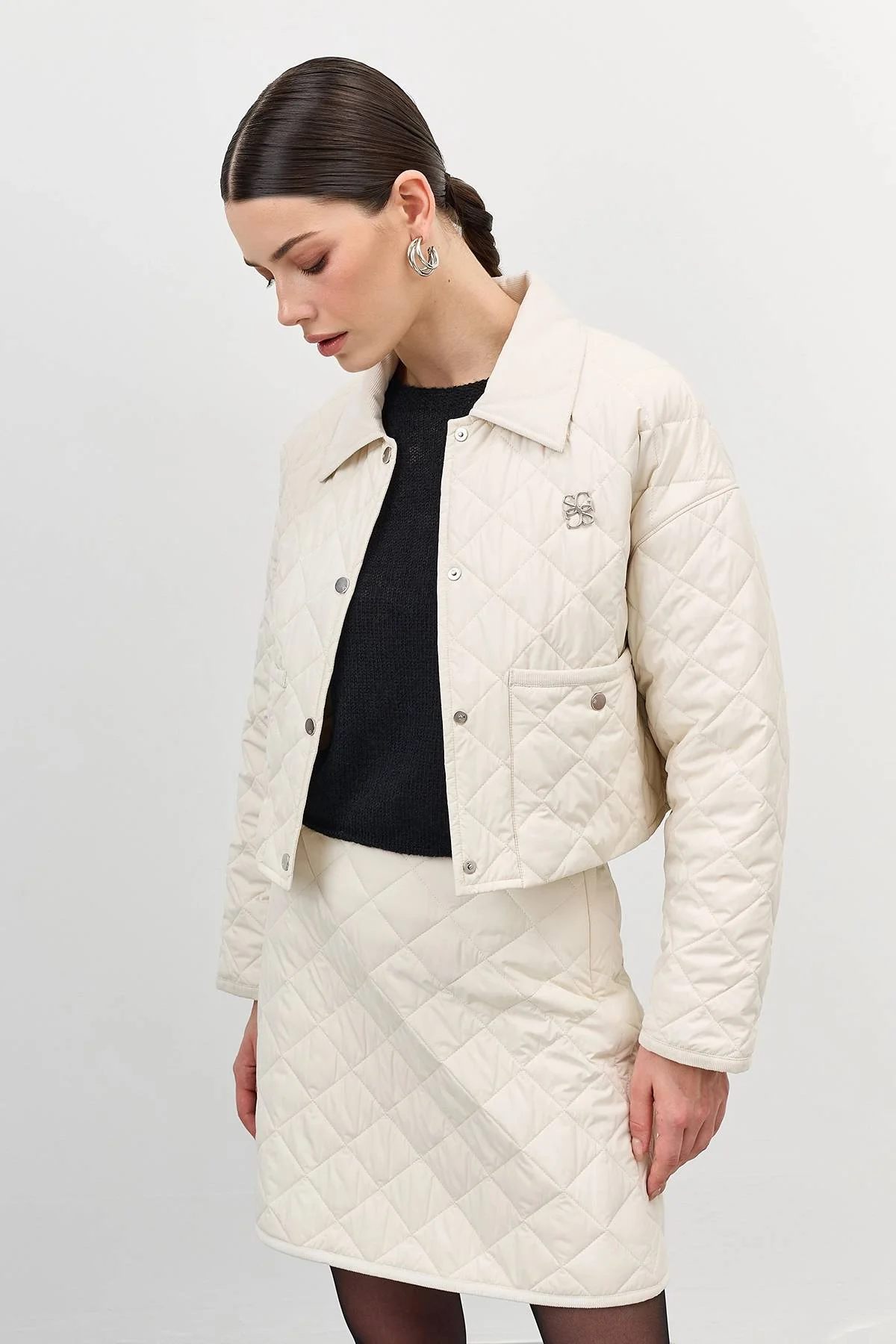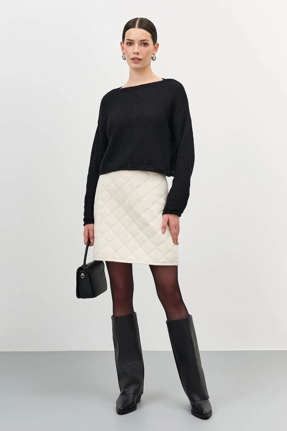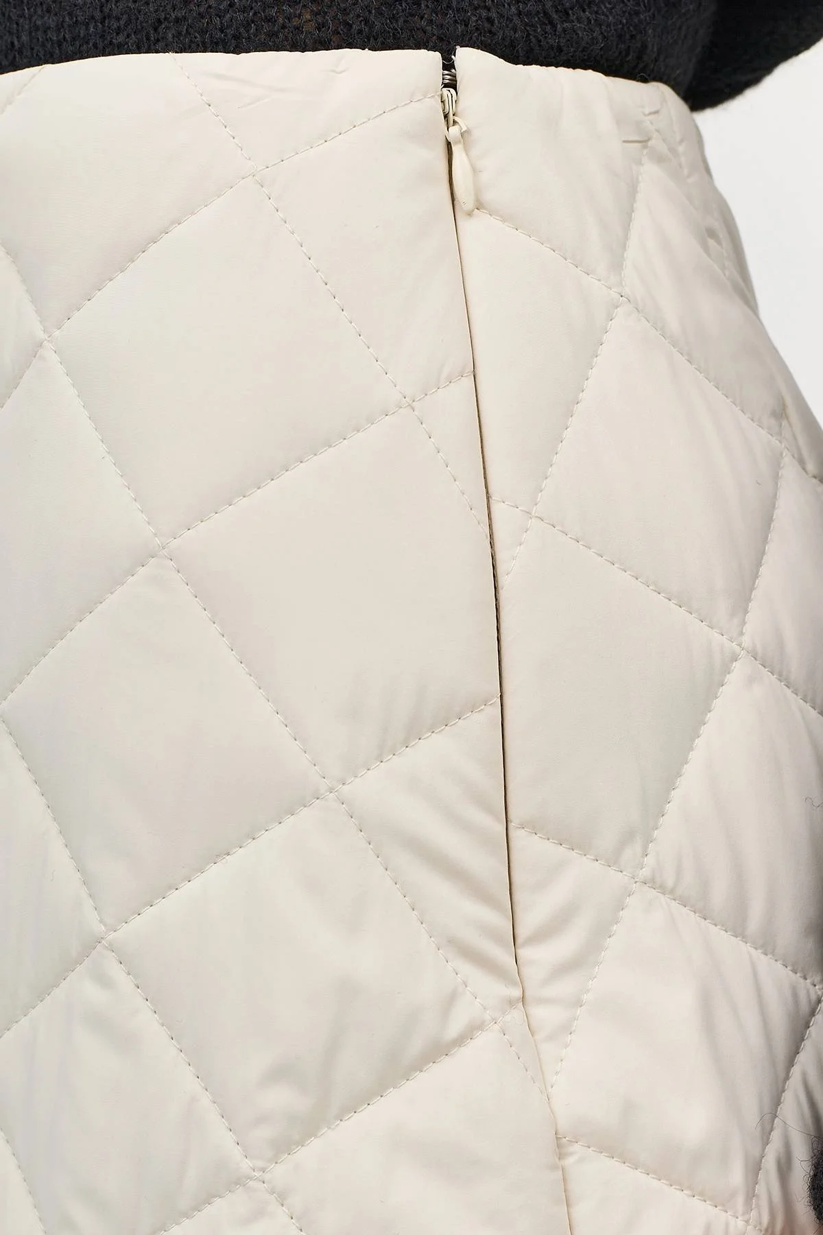 Стеганая юбка-мини прямого силуэта. Ромбовидная стежка. Застежка на потайную молнию. В комплекте с ремнем SVG202501.