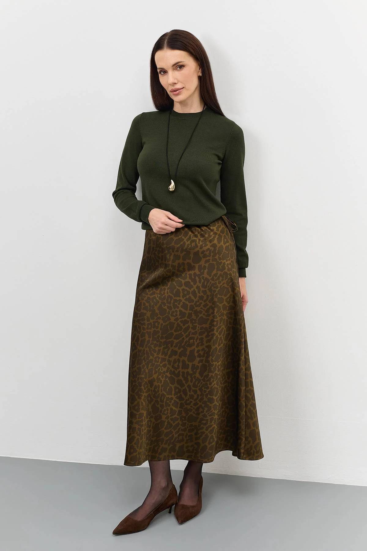 Сатиновая юбка с анималистичным принтом, 46
