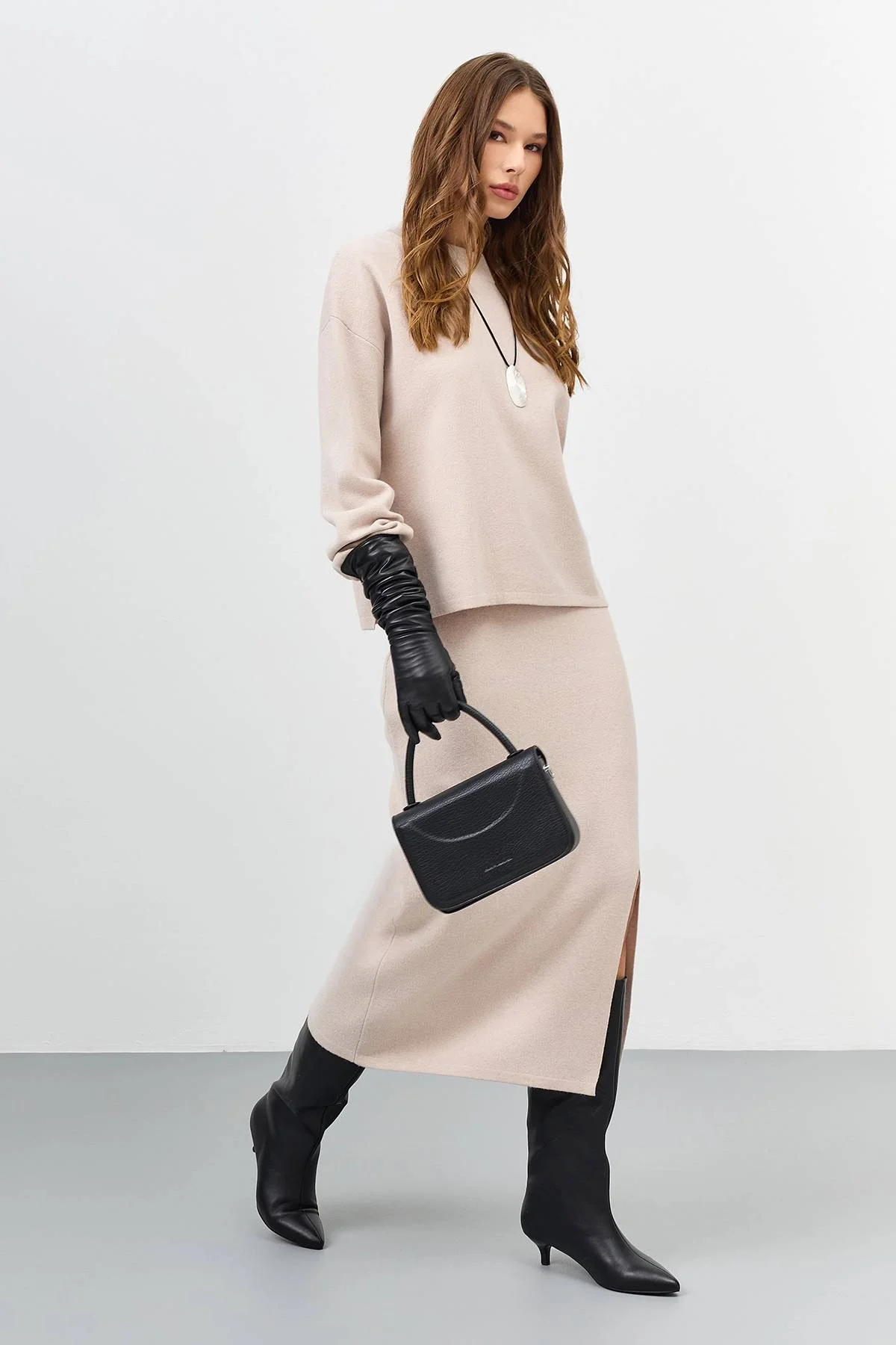 Светлая вязаная юбка-карандаш, 46