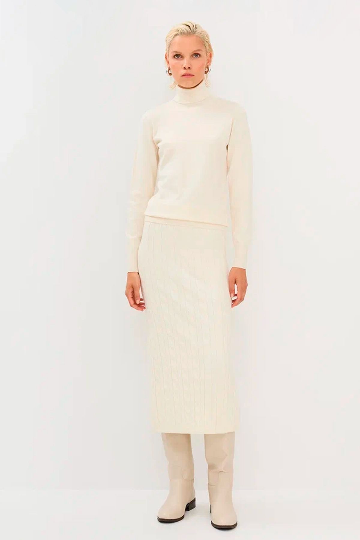 Трикотажная юбка с фактурной вязкой "жгут" в молочном цвете, 50р