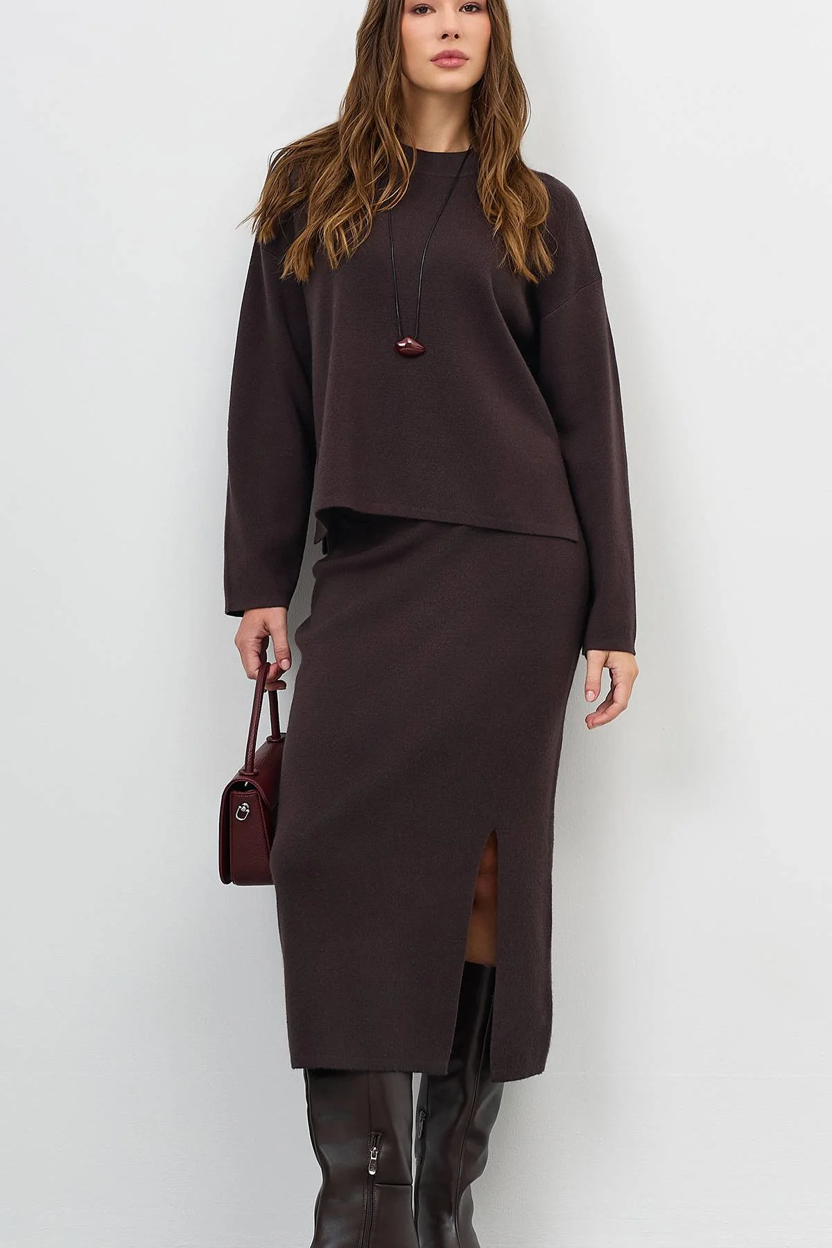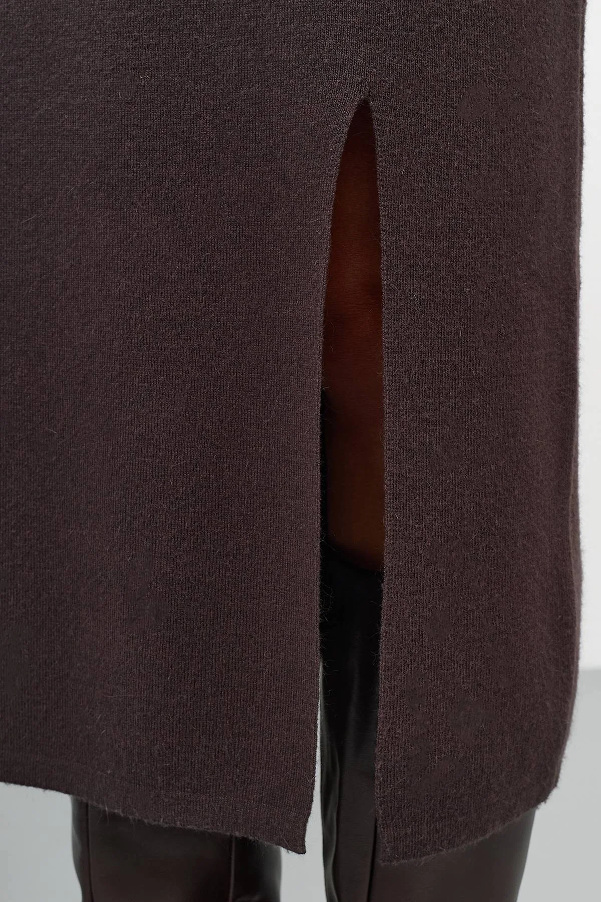 Вязаная юбка-карандаш с ангорой и вискозой в составе. Прямой силуэт. Резинка по линии талии. Дополнена высоким разрезом в боковом шве. Комплект с арт. 60717.
