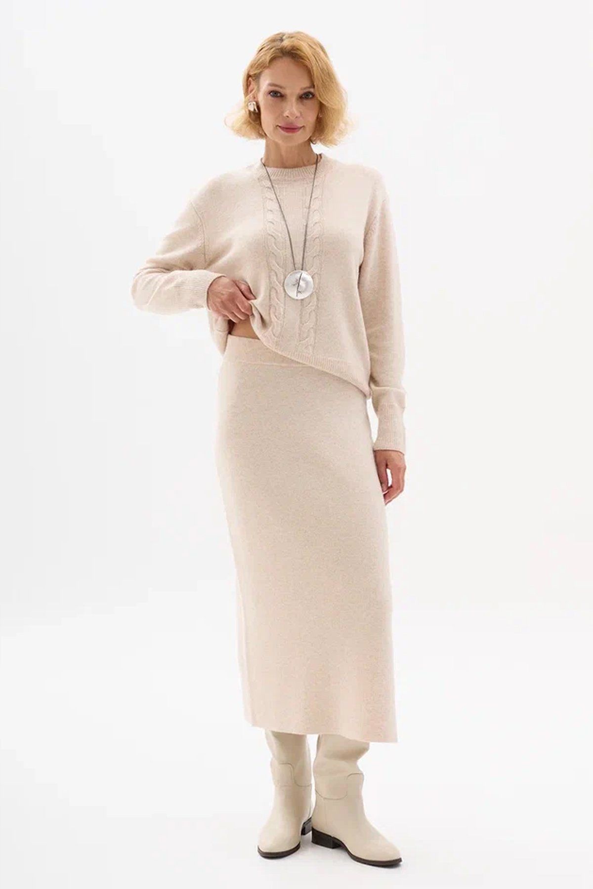 Юбка прямого силуэта. Высокий боковой разрез. В составе кашемир и шерсть. Резинка по талии. Комплект с 5246750.
