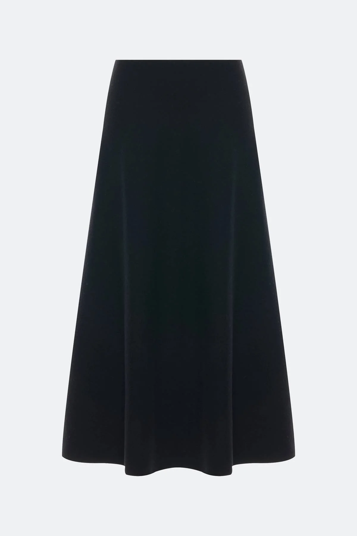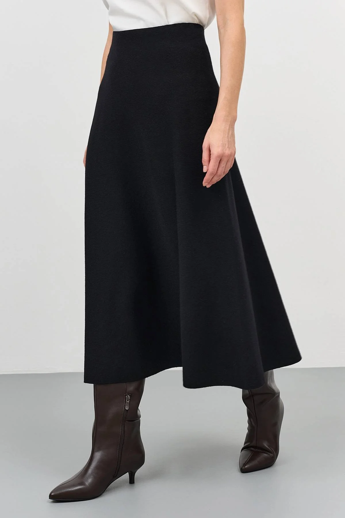 Трикотажная юбка-миди А-силуэта. Резинка по линии талии. В составе вискоза и шерсть.