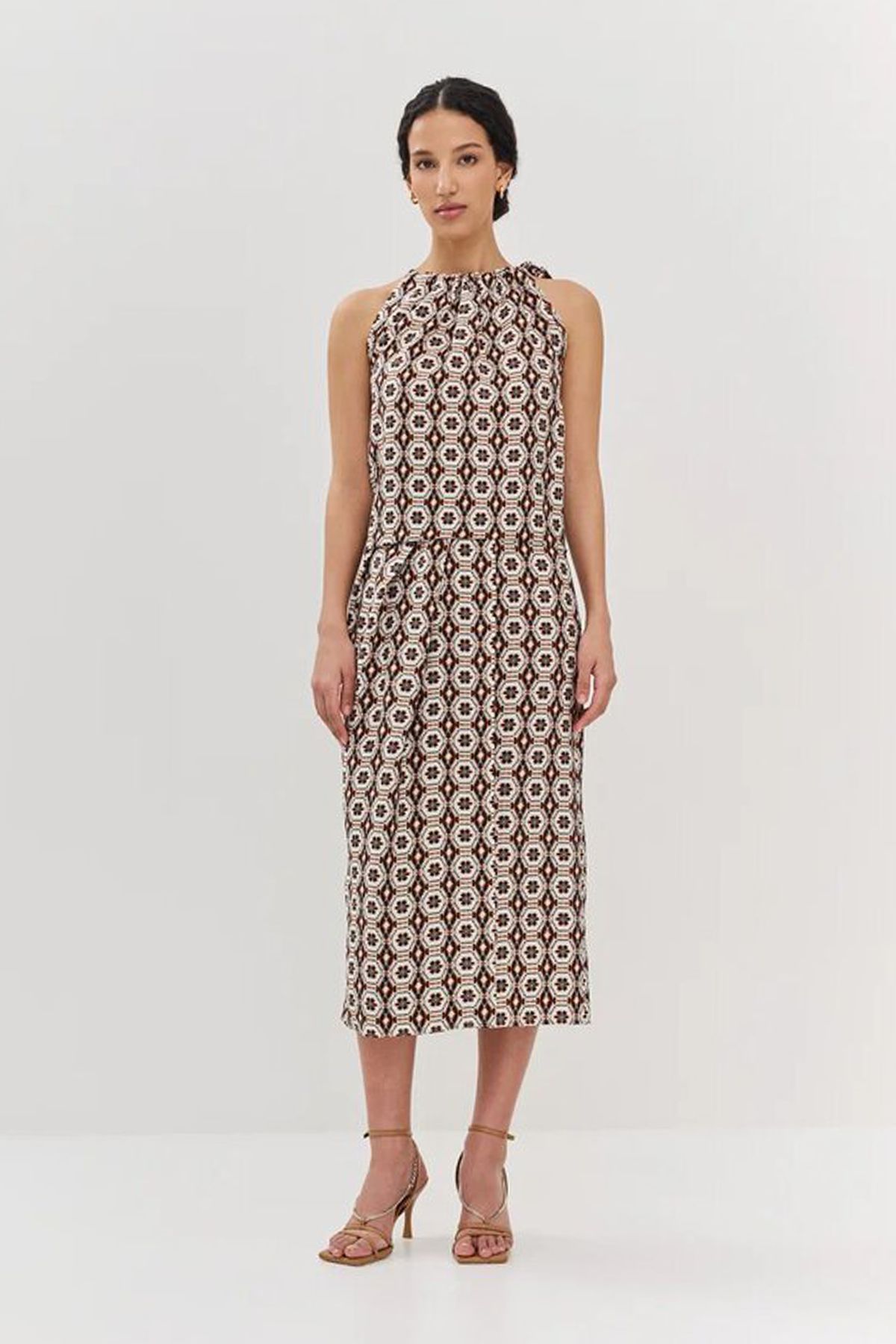 Юбка миди с абстрактным принтом станет ярким акцентом в вашем гардеробе. Неповторимый узор добавляет оригинальности и позволяет легко комбинировать юбку с различной верхней одеждой и обувью. Боковая молния не только придаёт удобство при надевании, но и добавляет современный штрих к дизайну юбки. Её длина отлично подходит как для повседневных образов, так и для более нарядных выходов. Сочетая юбку с простым топом или блузой, вы создадите стильный и гармоничный лук. Будь то прогулка с друзьями или деловая встреча, эта юбка будет великолепно смотреться в любых ситуациях.