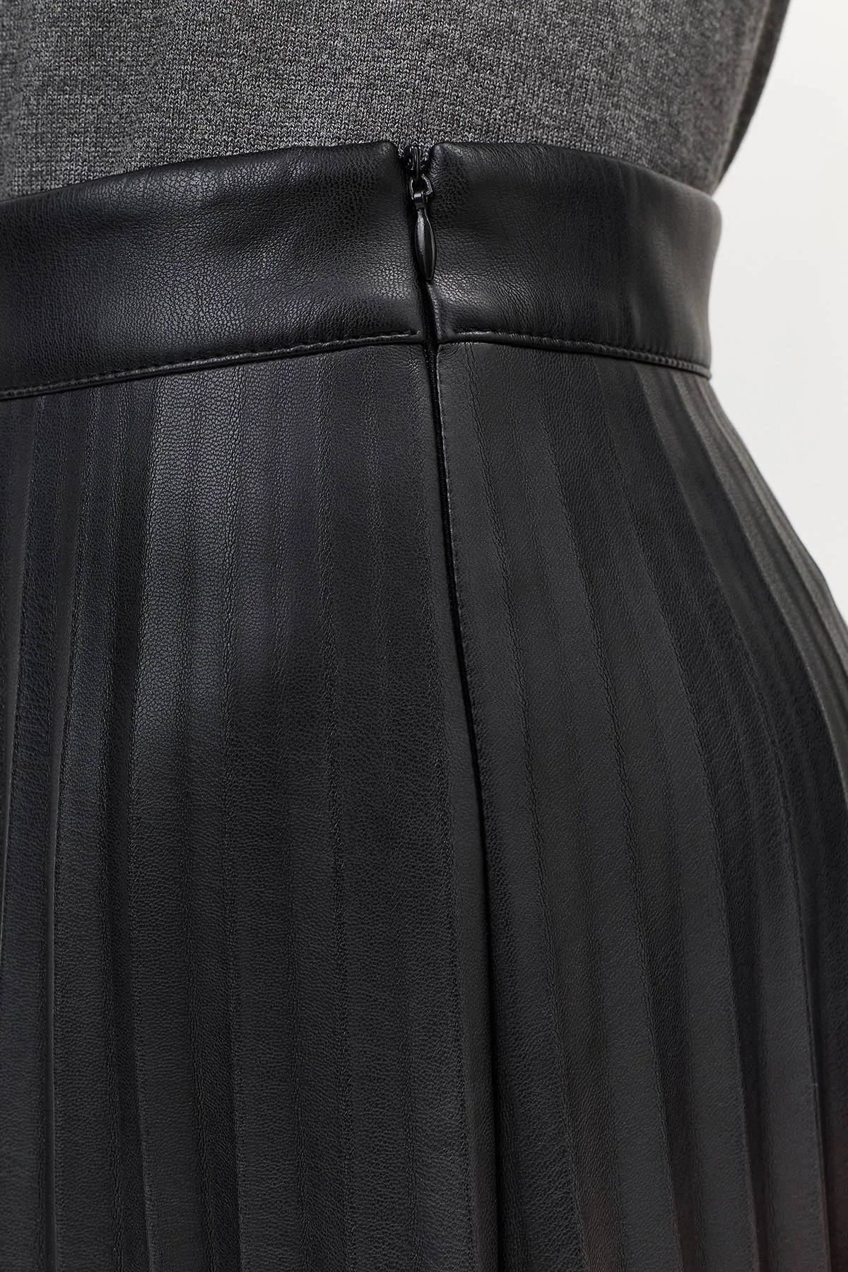 Юбка-плиссе из мягкой экокожи. Длина миди. А-силуэт. Застежка на молнию.