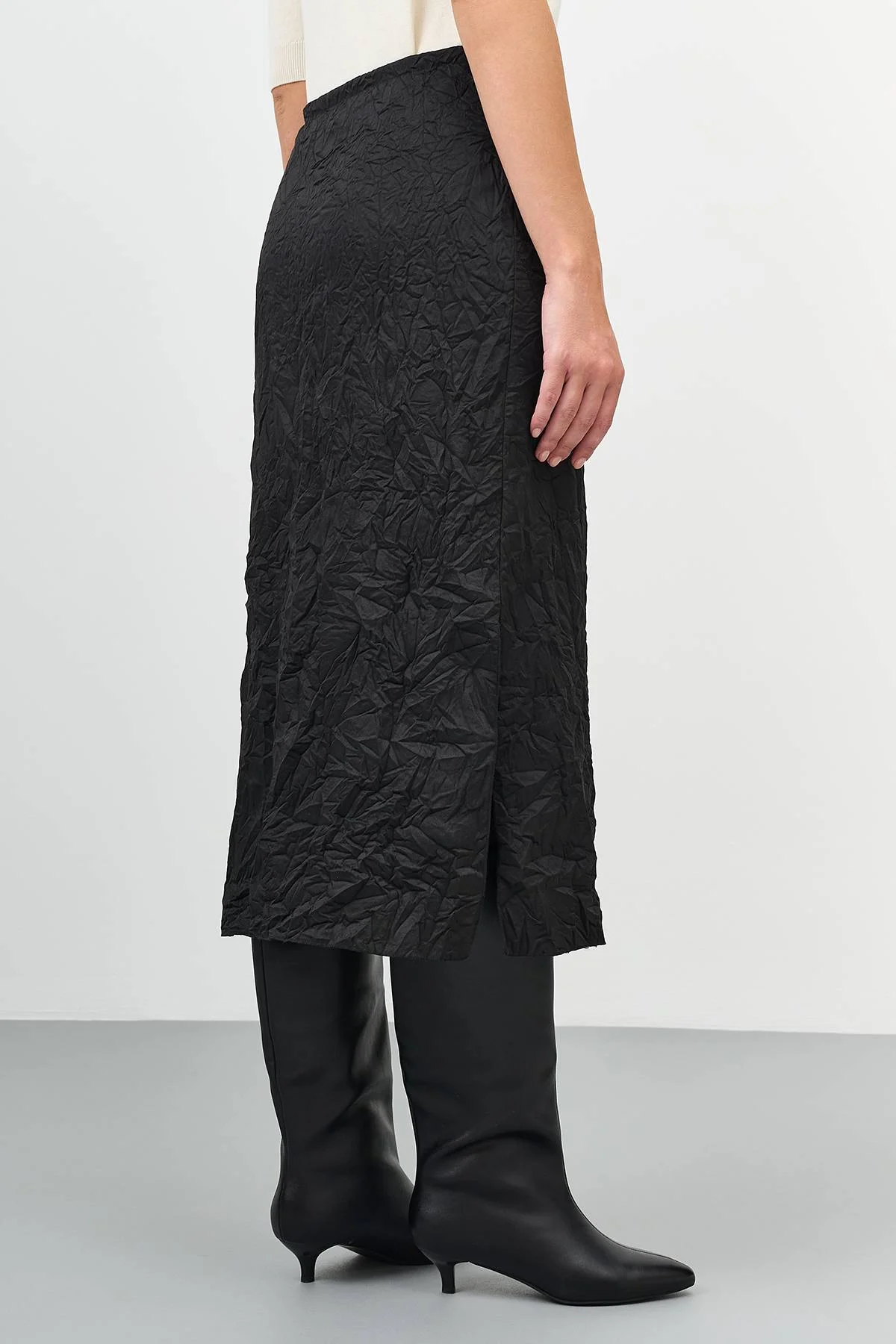 Юбка-плиссе из фактурной ткани с фантазийным принтом. Длина миди. А-силуэт. Оригинальная тонкая волнообразная плиссировка. Эластичный пояс