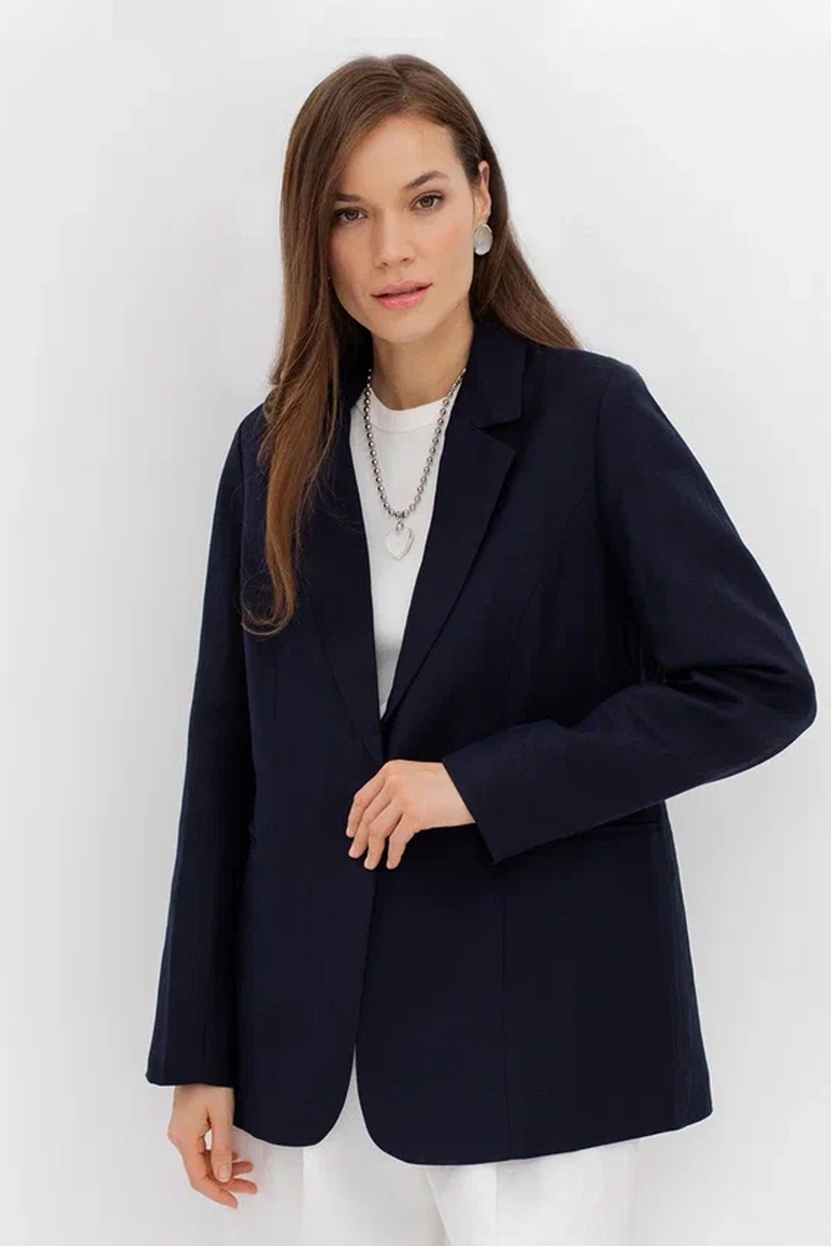 Однобортный жакет тёмно-синего цвета с подкладом, 42р