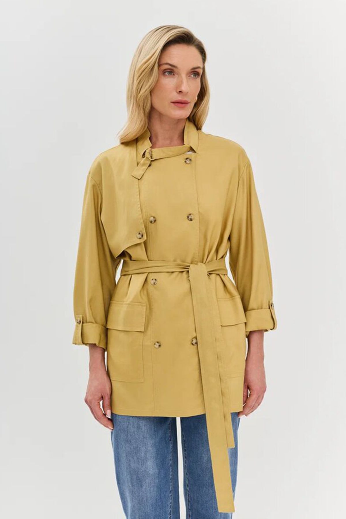 Жакет прямого силуэта из 100% тенсела с контрастными пуговицами и отложным воротником. Контрастные пуговицы обеспечивают не только цветовой акцент, но и практичное надевание и снятие. Боковые накладные карманы позволяют хранить важные мелкие ценности. Модель дополнена поясом, с помощью которого можно создать акцент в области талии. Этот жакет идеально подходит для создания как повседневных, так и более нарядных образов, подчеркивая ваш стиль и индивидуальность.