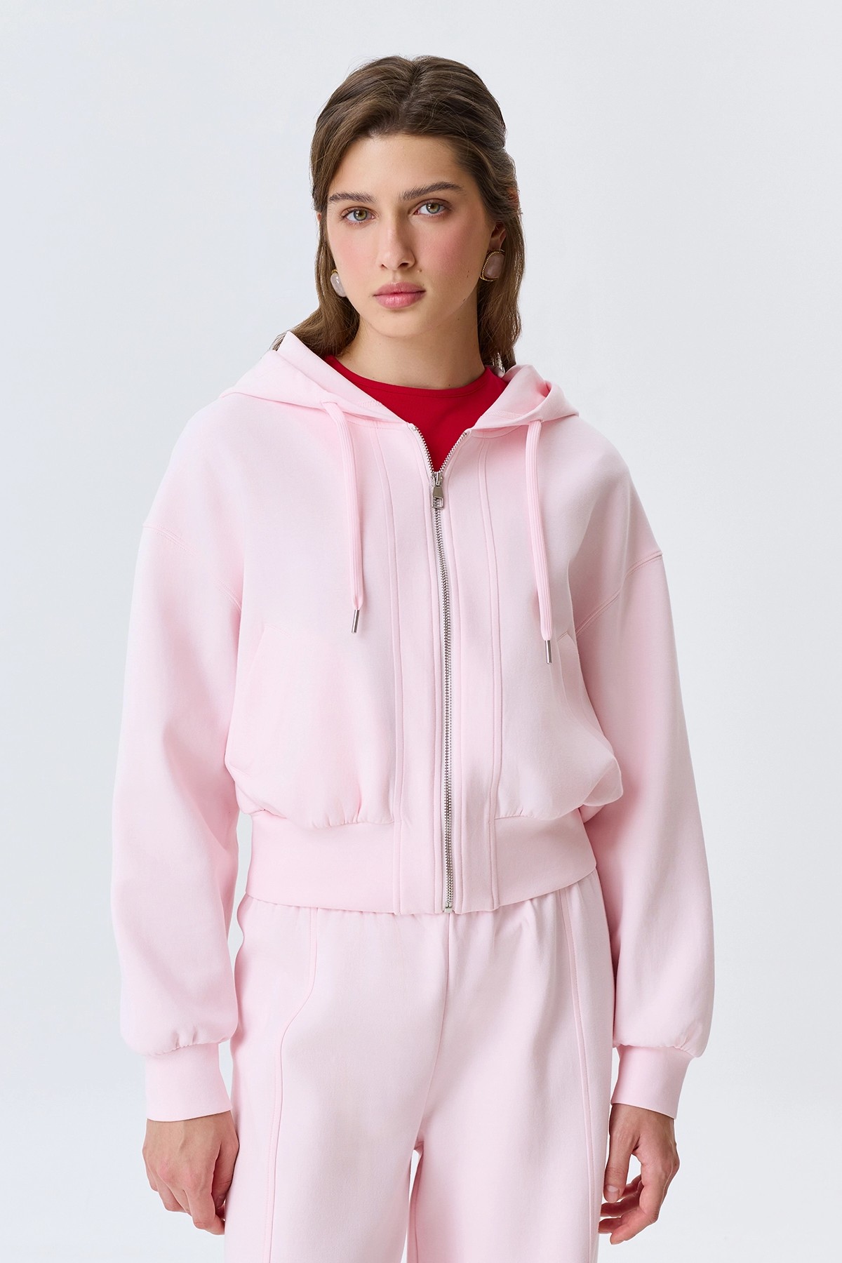 Укороченное розовое худи на молнии, 42