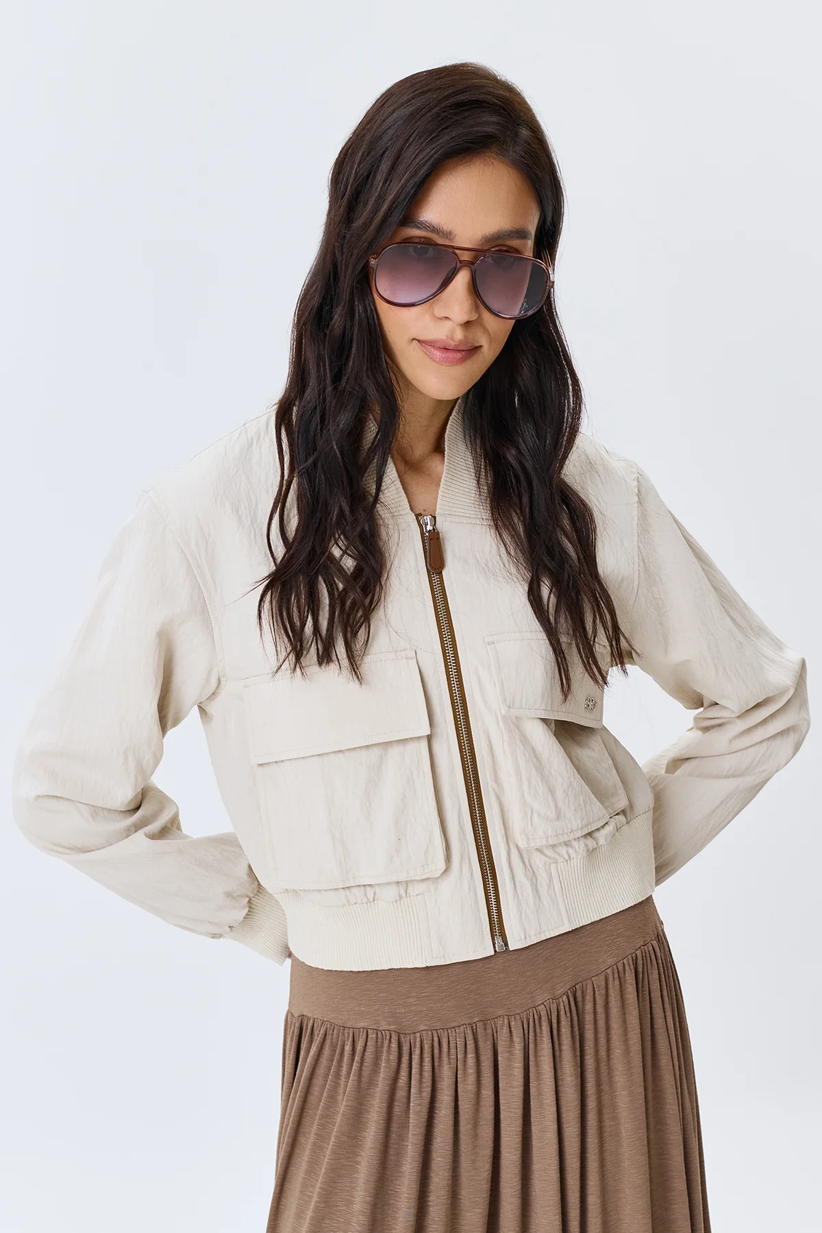 Укороченный бомбер с широким рибом, 46