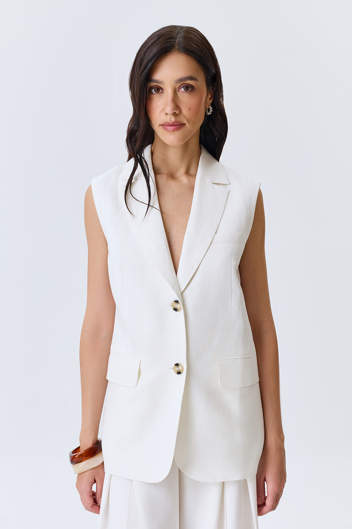 Удлиненный льняной жилет, 52 Удлиненный льняной жилет, 52 Удлиненный льняной жилет, 52