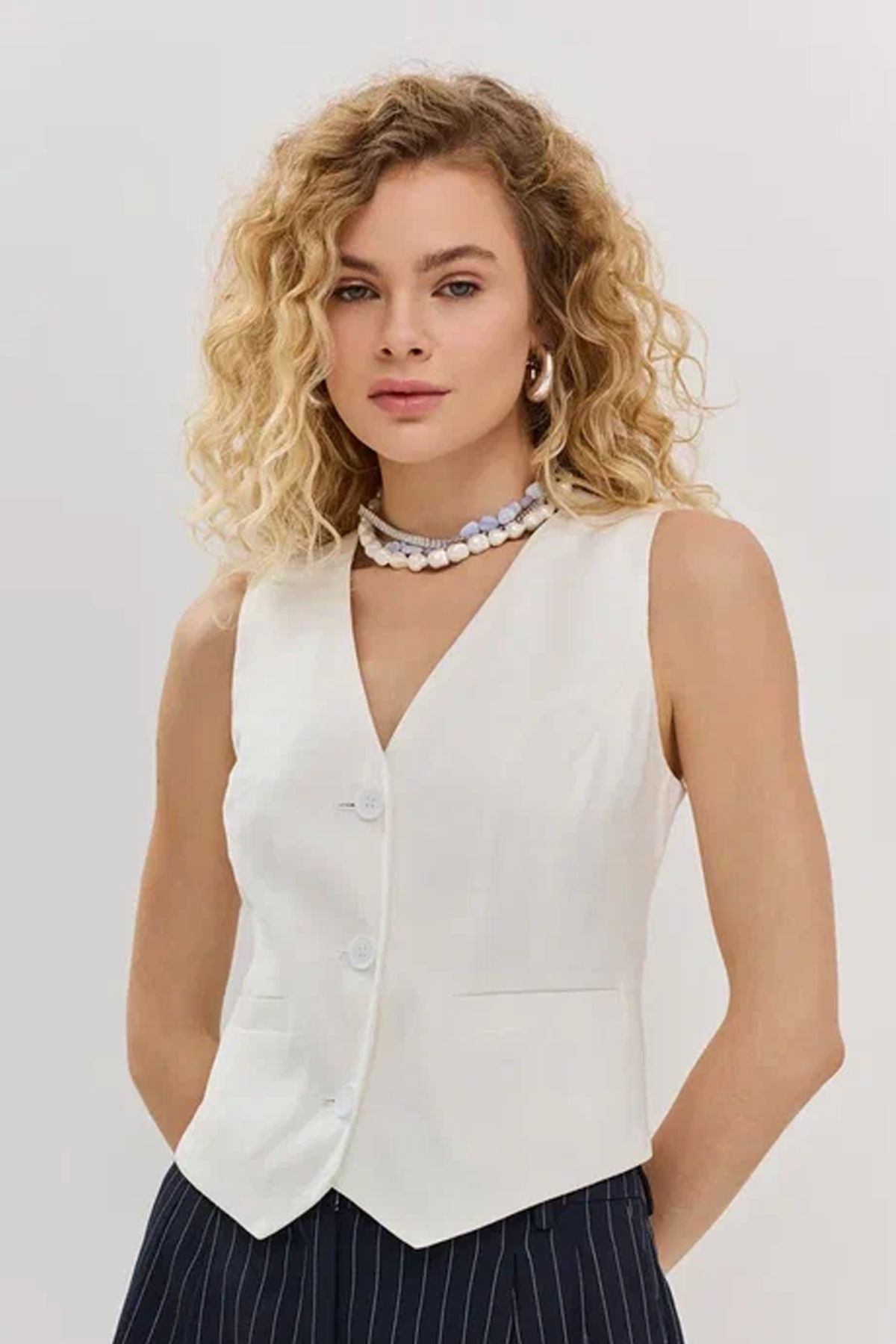 Жилетка молочного цвета с V-образным вырезом горловины, 44р