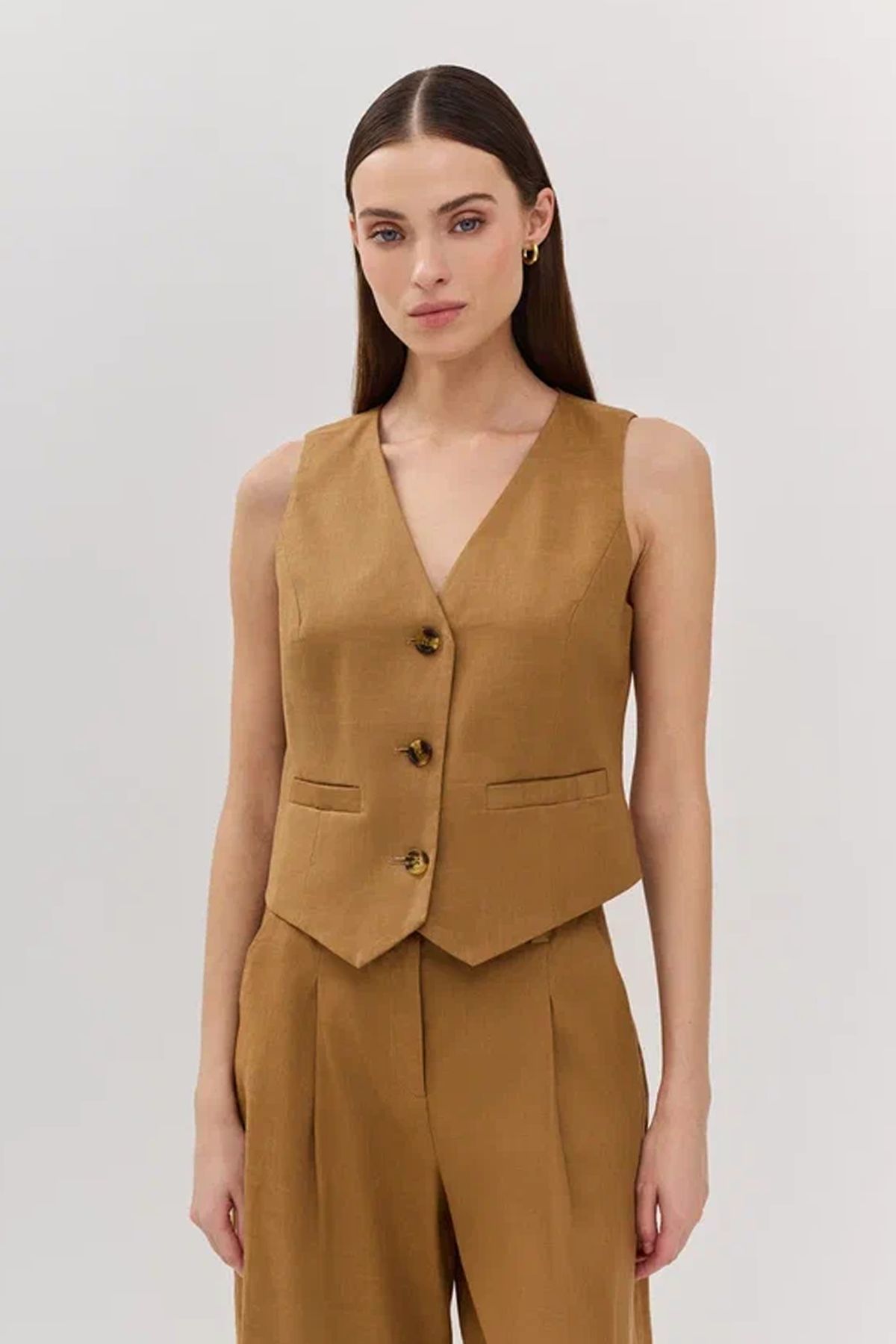 Жилетка коричневого цвета с V-образным вырезом горловины, 52р