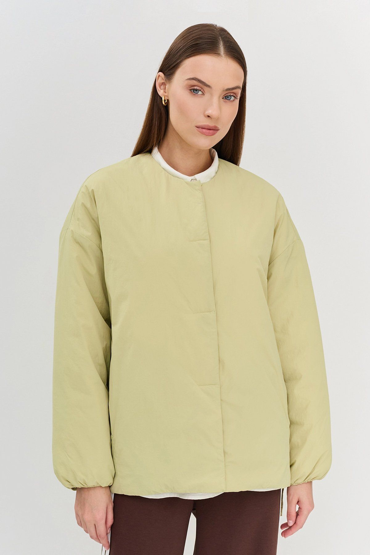 Куртка в цвете "зелёное яблоко" без капюшона с утеплителем, 46р