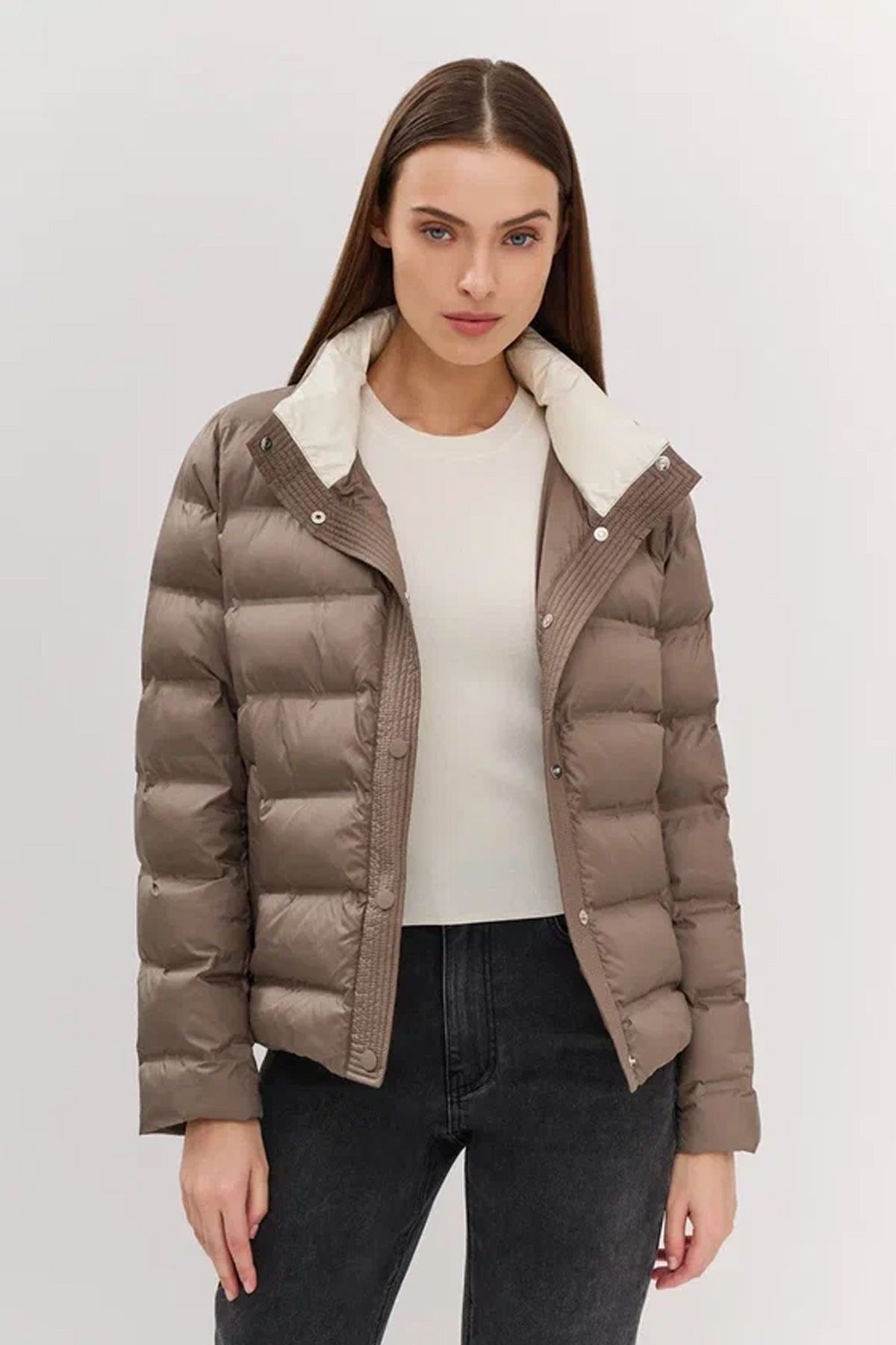 Куртка с контрастной подкладкой в бежево-сером цвете, 52р