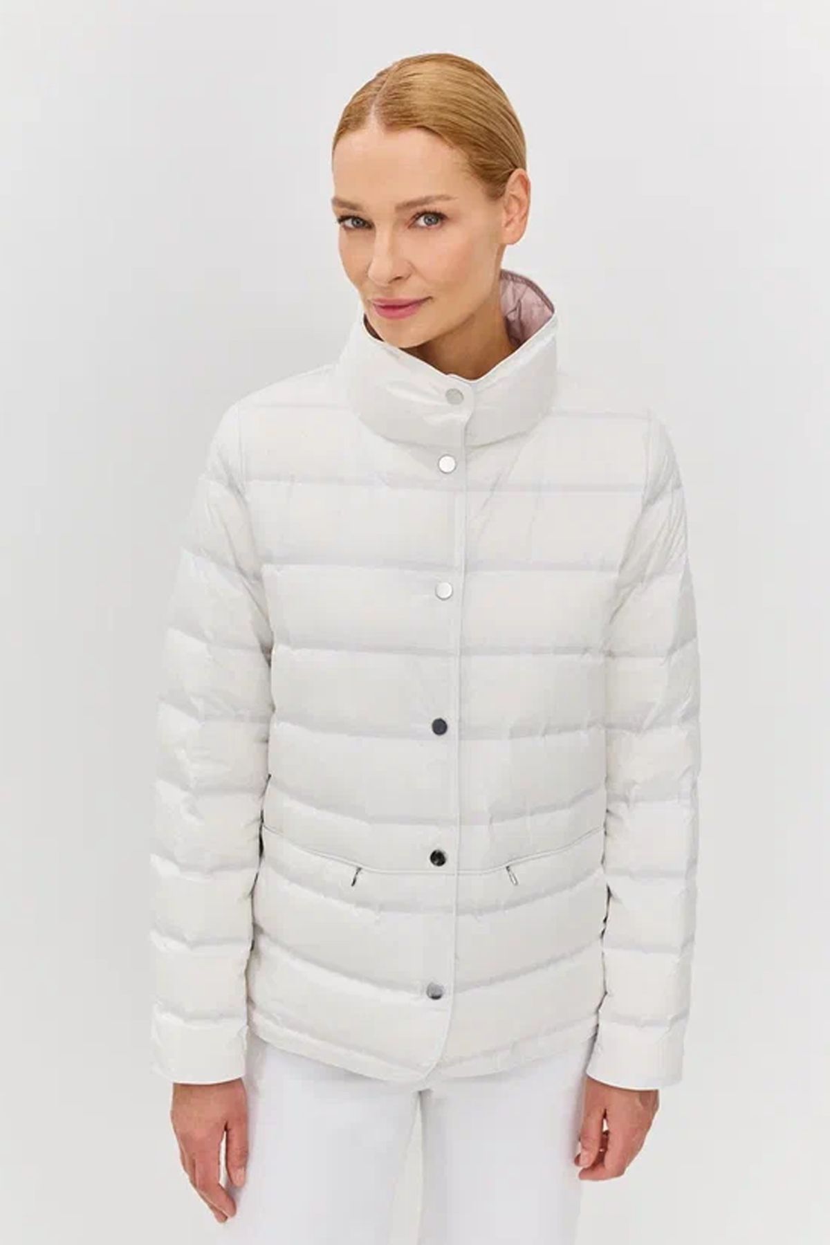 Куртка с контрастной подкладкой прямого силуэта в жемчужном цвете, 52р