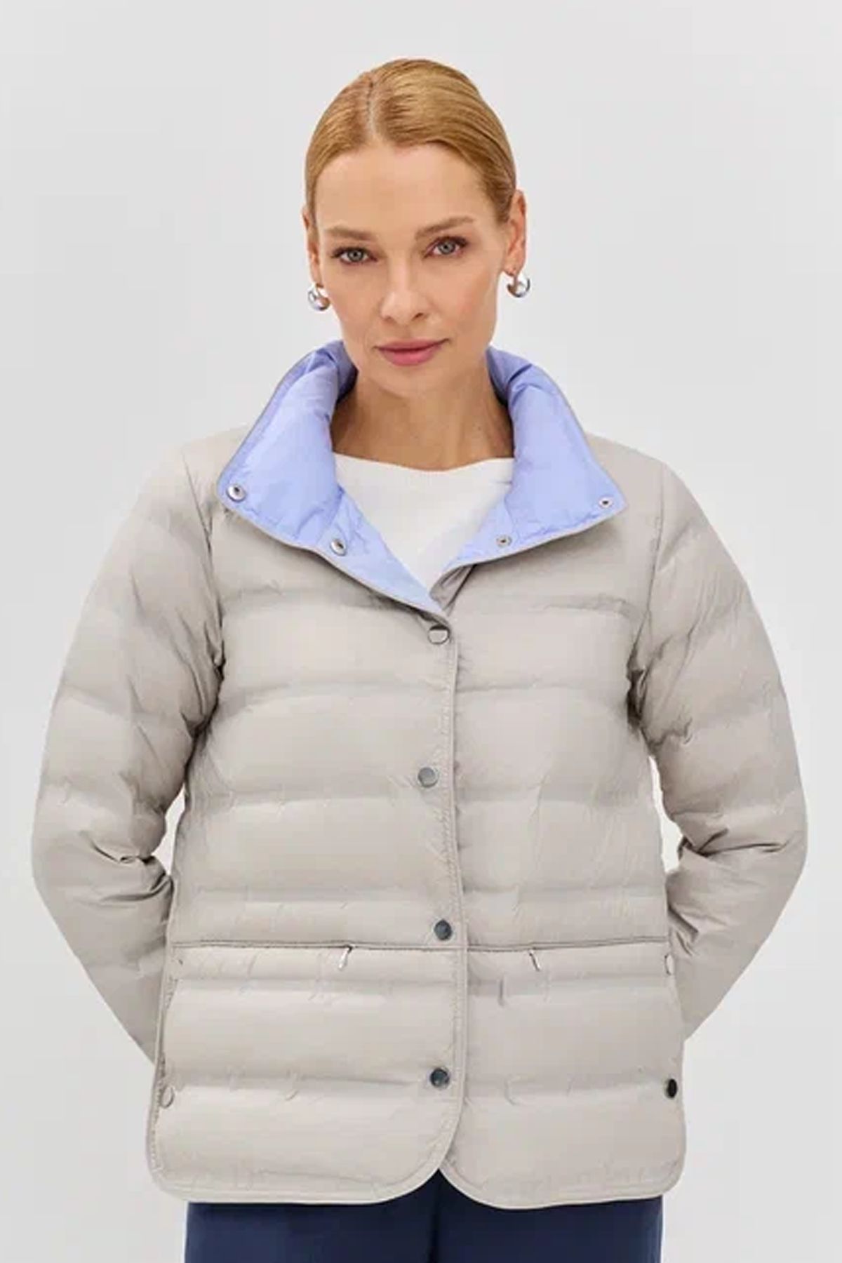 Куртка с контрастной подкладкой прямого силуэта в каменном цвете, 44р