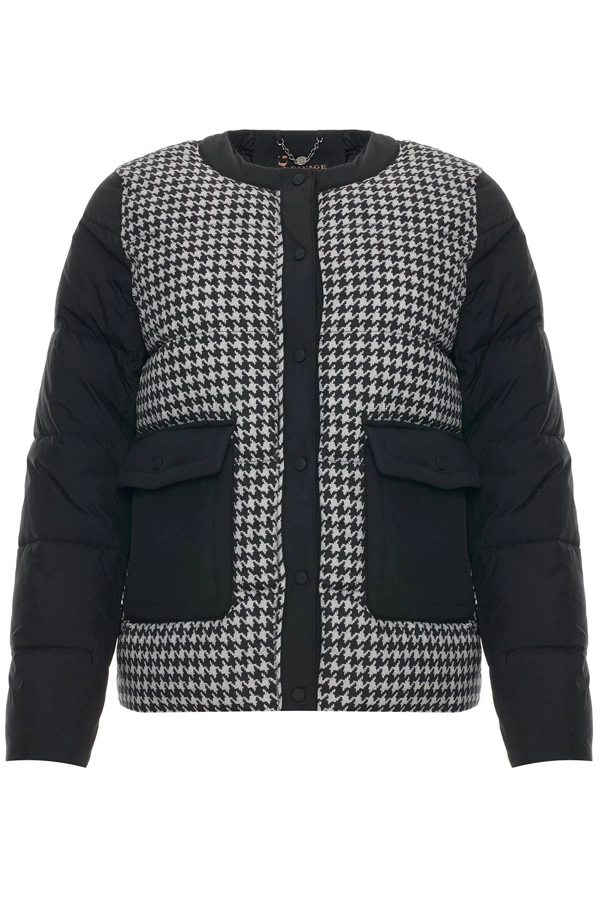 Куртка Savage 60103/9 - Укороченная модель с эффектным принтом «гусиная лапка» и контрастными деталями создает яркий городской образ. Практичные накладные карманы с клапанами и застежка на кнопки добавляют функциональности. Легкий утеплитель и гладкая ткань обеспечивают комфорт в демисезон. В комплекте с палантином LBL34-348-01