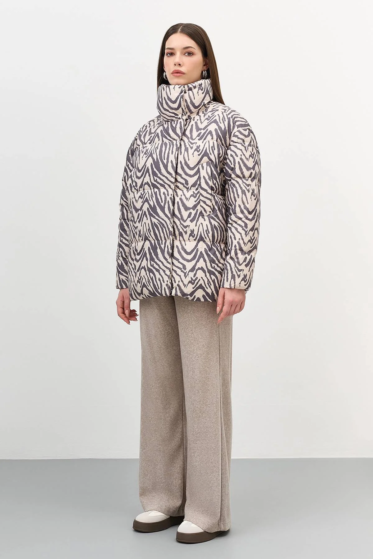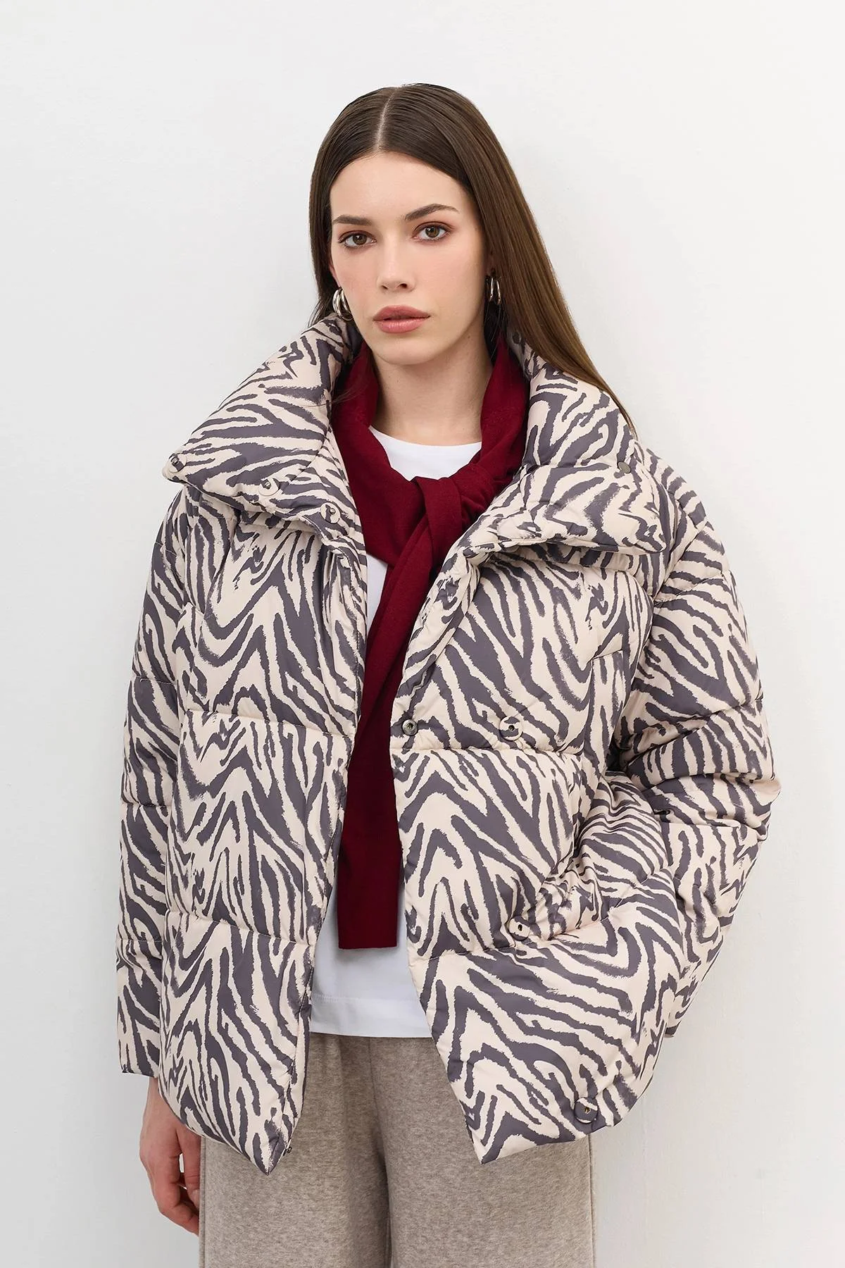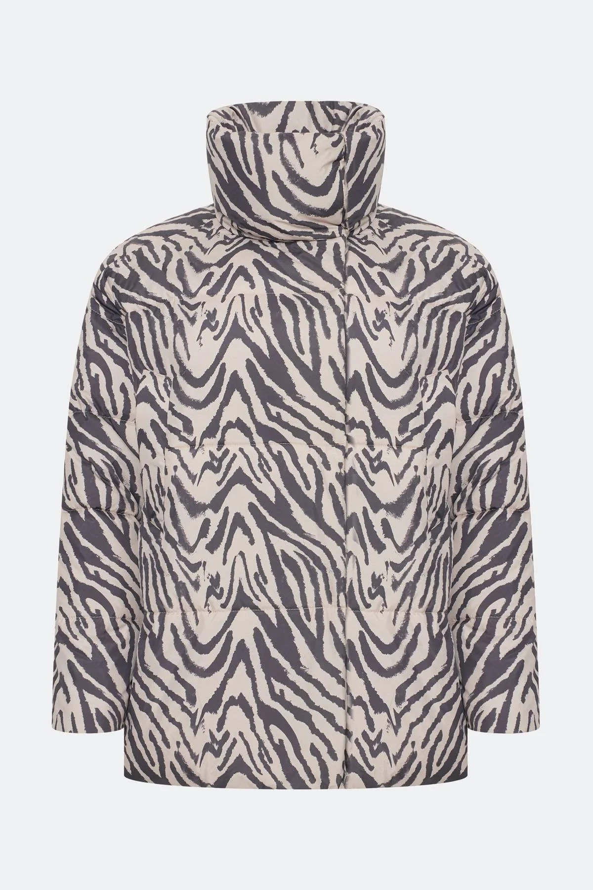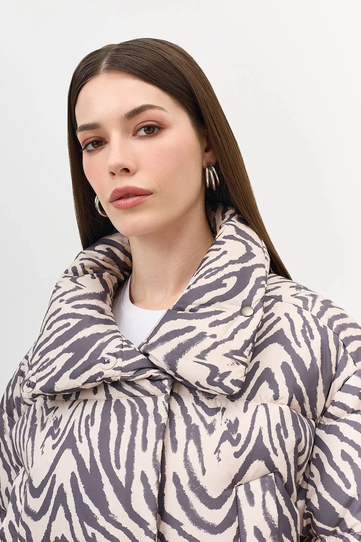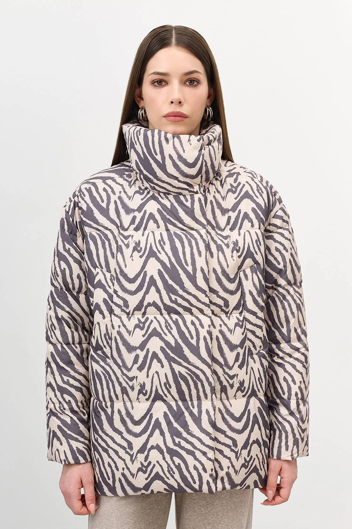 Куртка Savage - яркая куртка с анималистичным принтом силуэта Oversize. Спущенная линия плеч. Воротник высокая стойка меняется на отложной. Застежка на кнопки. Боковые карманы с листочками. Кулиса по низу изделия для защиты от ветра. В комплекте с палантином SVG302508.