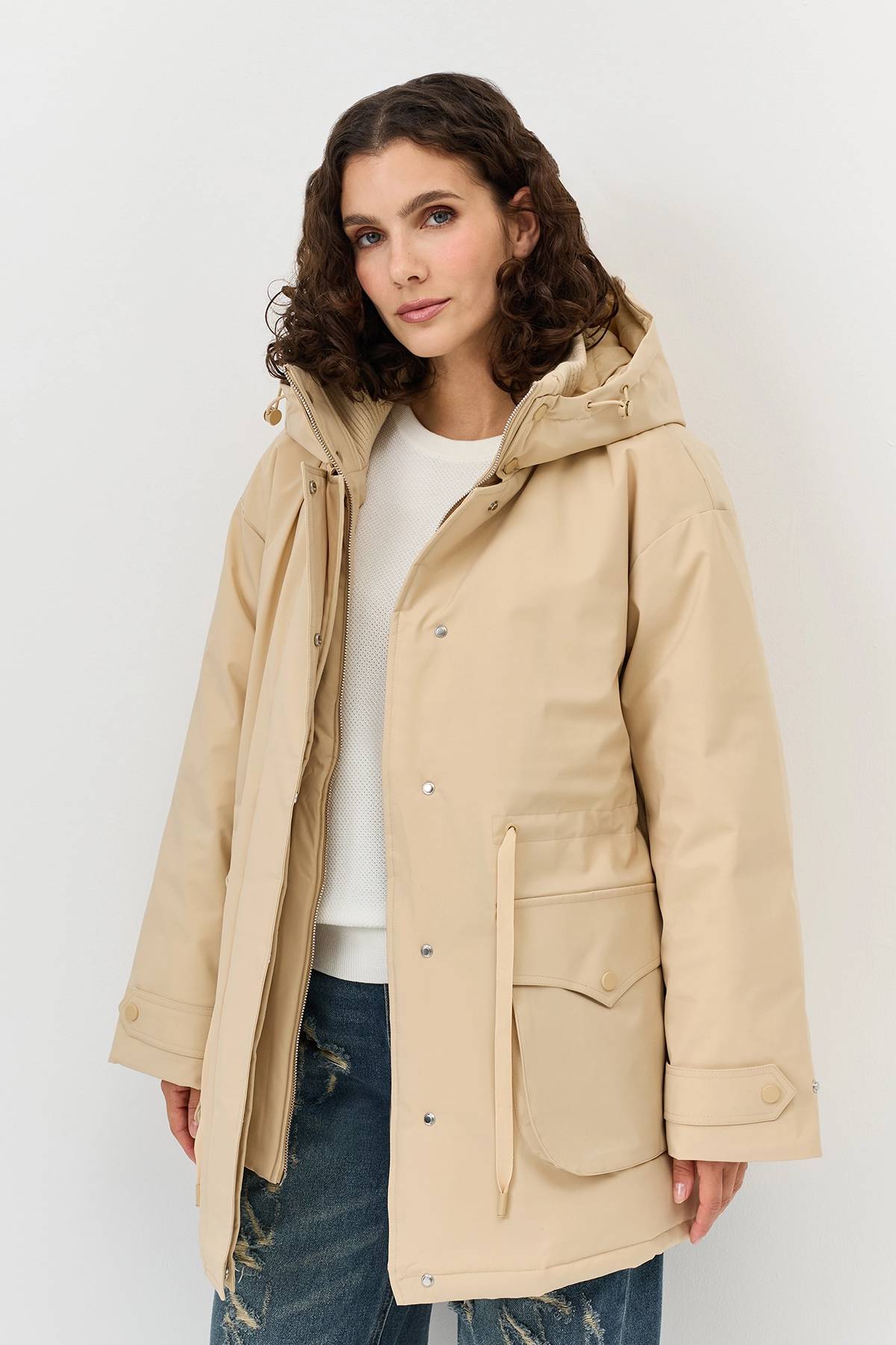 Лимитированная серия куртка песочная с палантином, 40