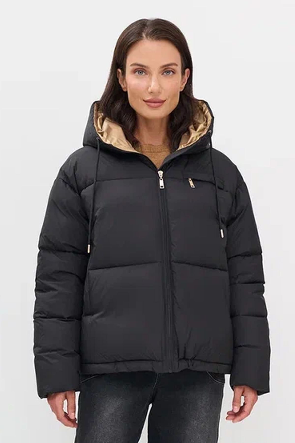 Объемная куртка с металлизированной подкладкой в черном цвете, 48р