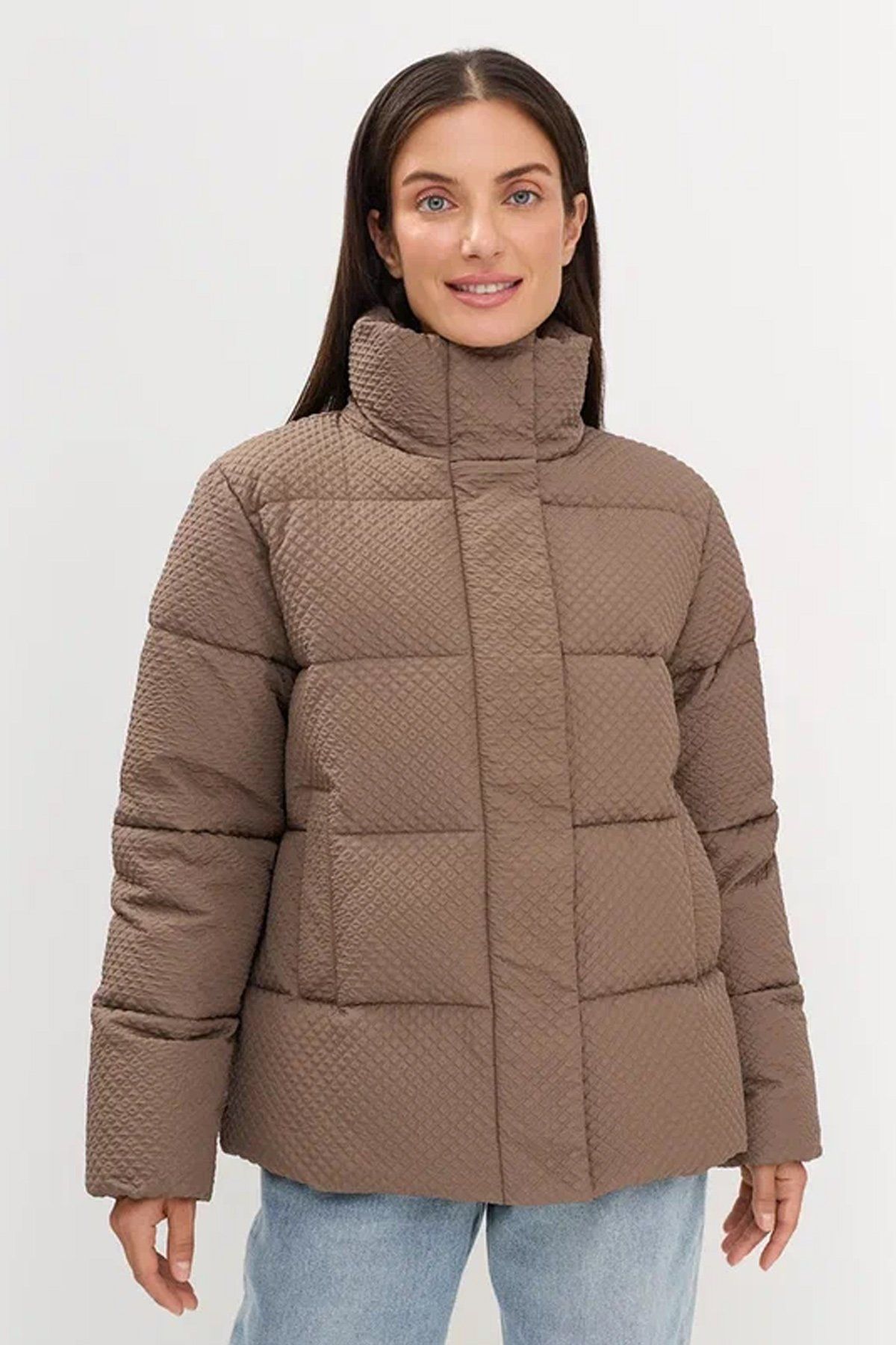 Укороченная куртка из фактурной ткани в цвете кофе, 46р