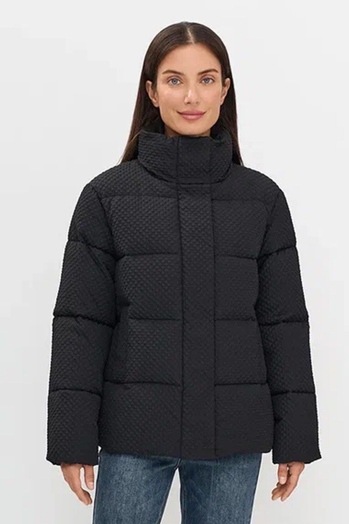 Укороченная куртка из фактурной ткани в черном цвете, 52р