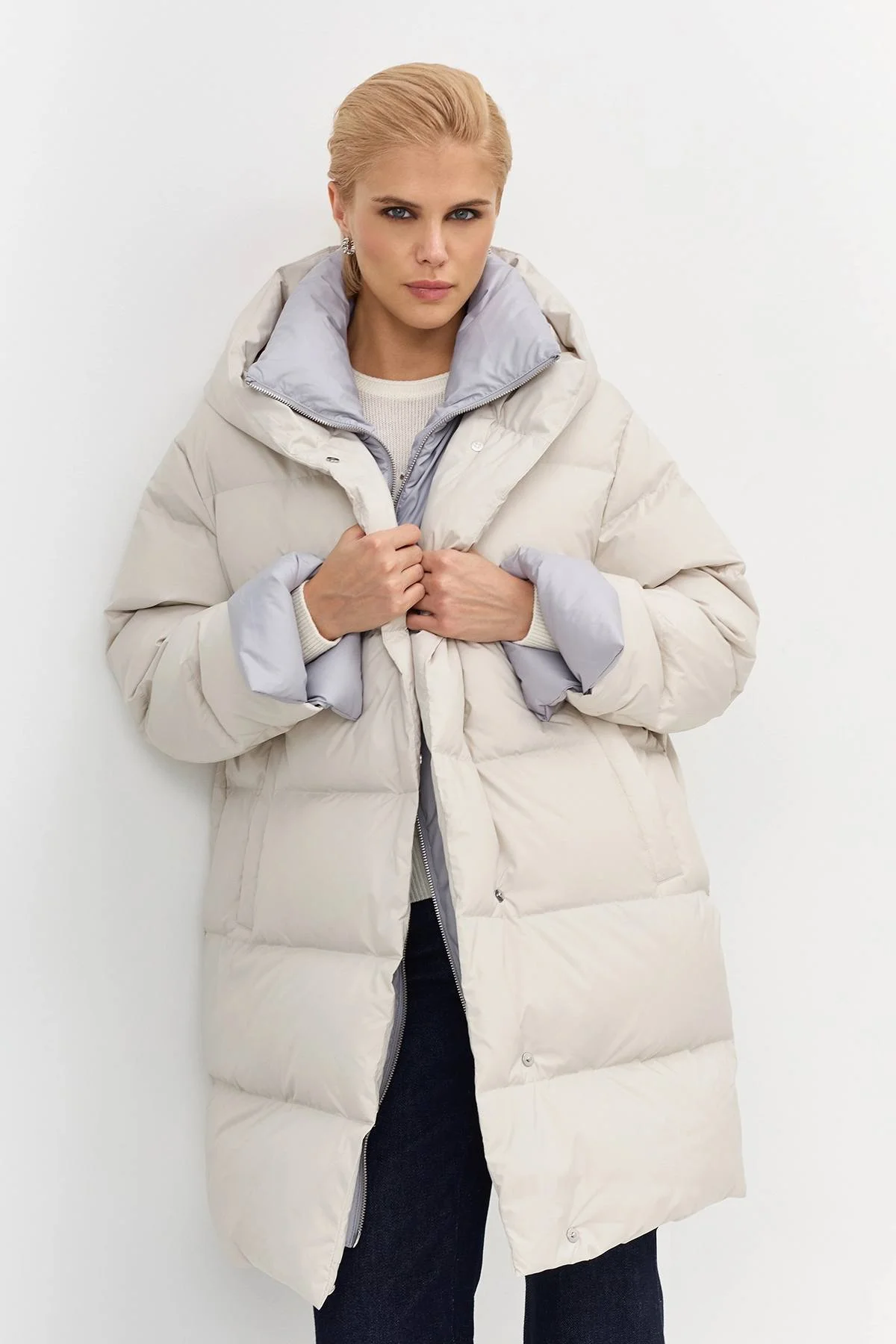 Укороченный пуховик с контрастной отделкой, 44