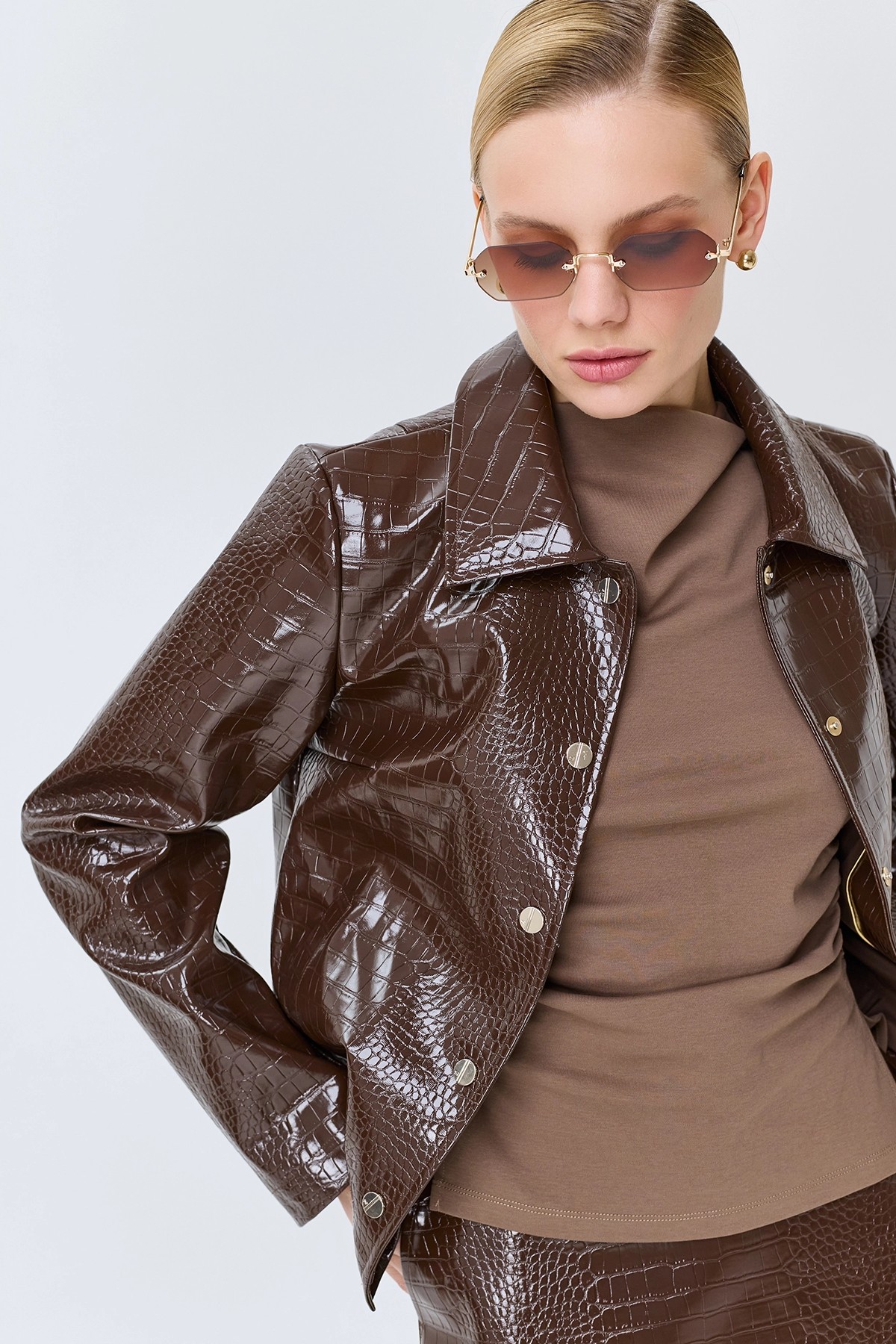 Жакет из фактурной искусственной кожи, 44