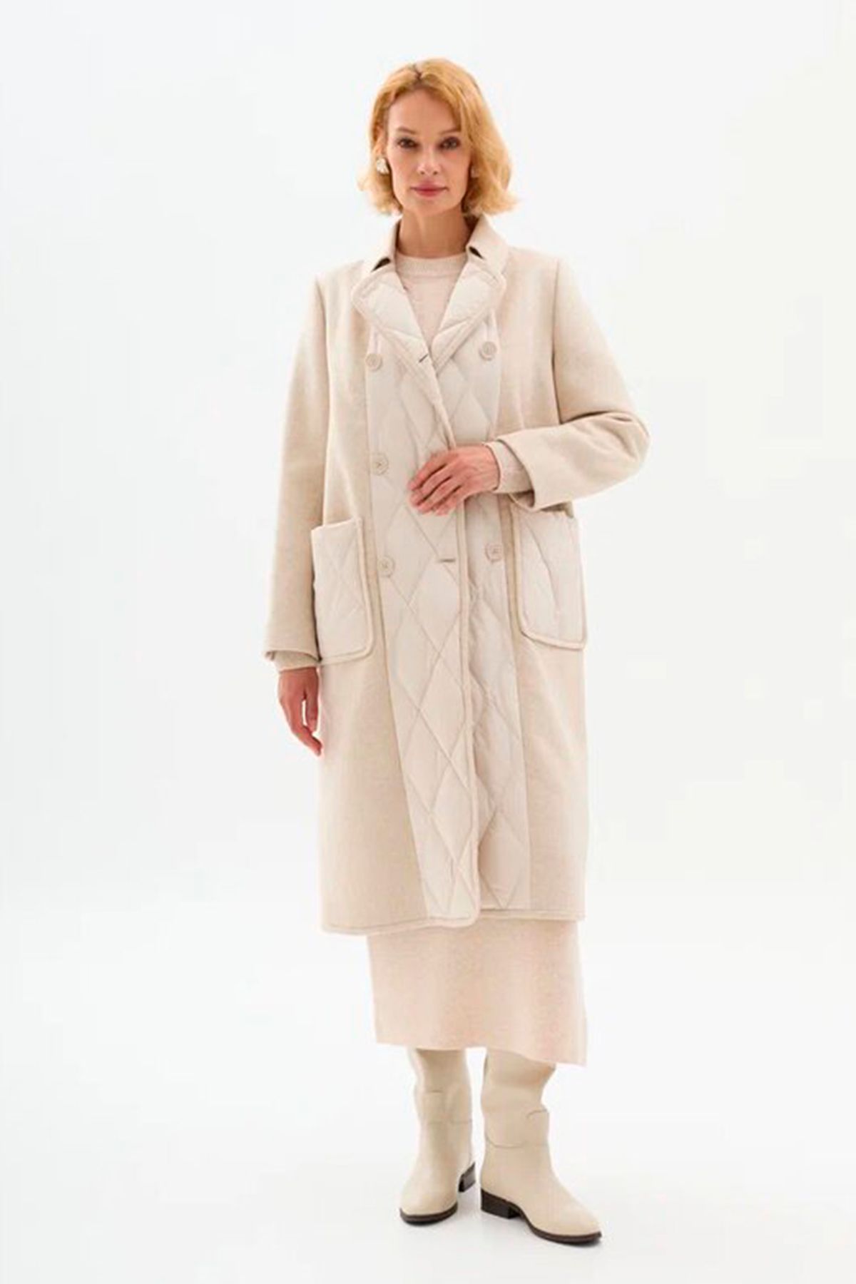 Изготовленное из натурального пуха и шерсти, это пальто обеспечивает надежное тепло и уют в любую погоду. Застежка на пуговицы добавляет классический акцент, а отложной воротник, который можно преобразовать в английский, обеспечивает дополнительную защиту от холода и разнообразит ваш образ. Практичные накладные карманы не только добавляют стильный штрих, но и обеспечивают удобство для хранения мелочей. Это пальто станет великолепным дополнением вашего осенне-зимнего гардероба, сочетая высокое качество, комфорт и актуальный дизайн.